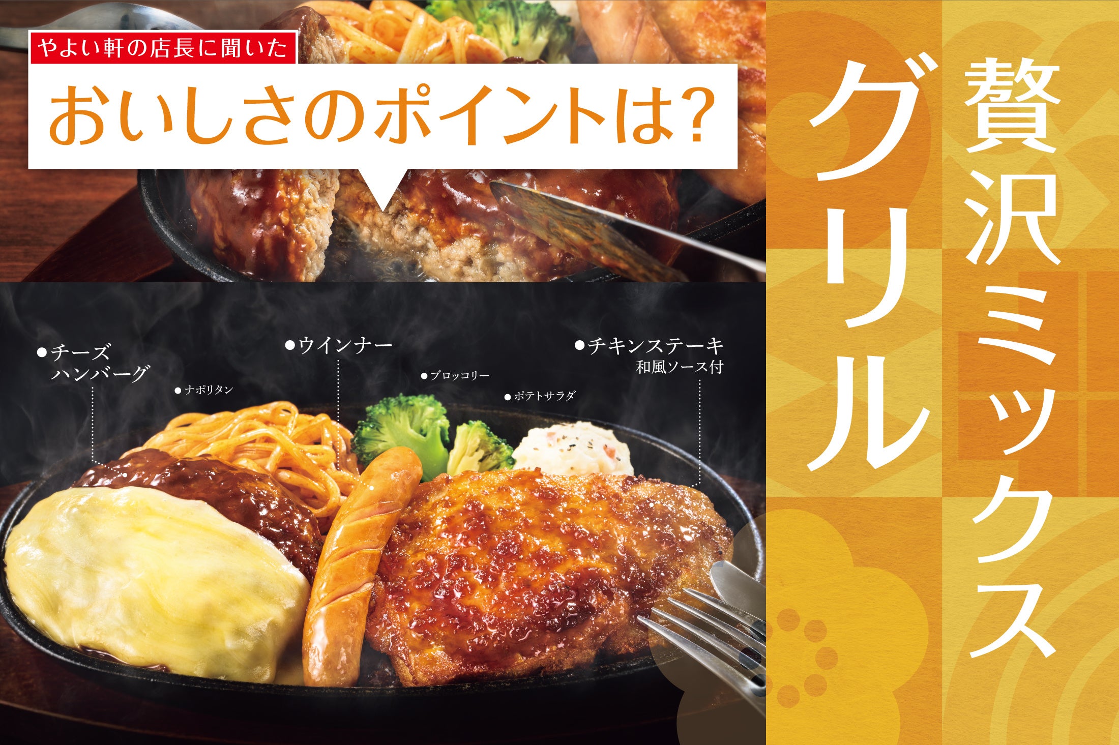 このたび「やよい軒」では4月23日(火)より販売している『贅沢ミックスグリル定食』『贅沢チーズミックスグリル定食』のおすすめポイントを全国の店長にアンケート調査いたしました。商品を購入する際には、どんな商品か気になる方も多いのではないでしょうか?店長のおすすめポイントからその美味しさを解明していきます。