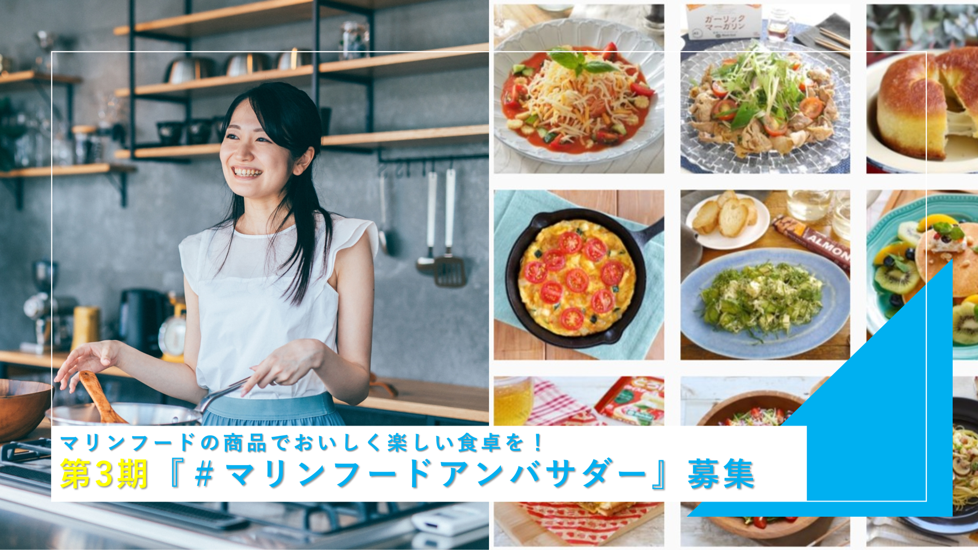 この度、マリンフードアンバサダーの第3期メンバーを2024年5月1日(水)から募集させていただきます。マリンフード商品を普段からご愛用いただいている方、まだマリンフード商品を使っていないけれども気になっている方、毎日の料理を時短でおいしく楽しみたい方、おいしいものが大好きなグルメな方など、アクティブに活動を楽しんでくださる方をお待ちしております。ご応募いただいた方の中から、5名のアンバサダーを決定し、約1年間活動をしていただきます。また、アンバサダーの方には様々な嬉しい活動特典をご用意しております。