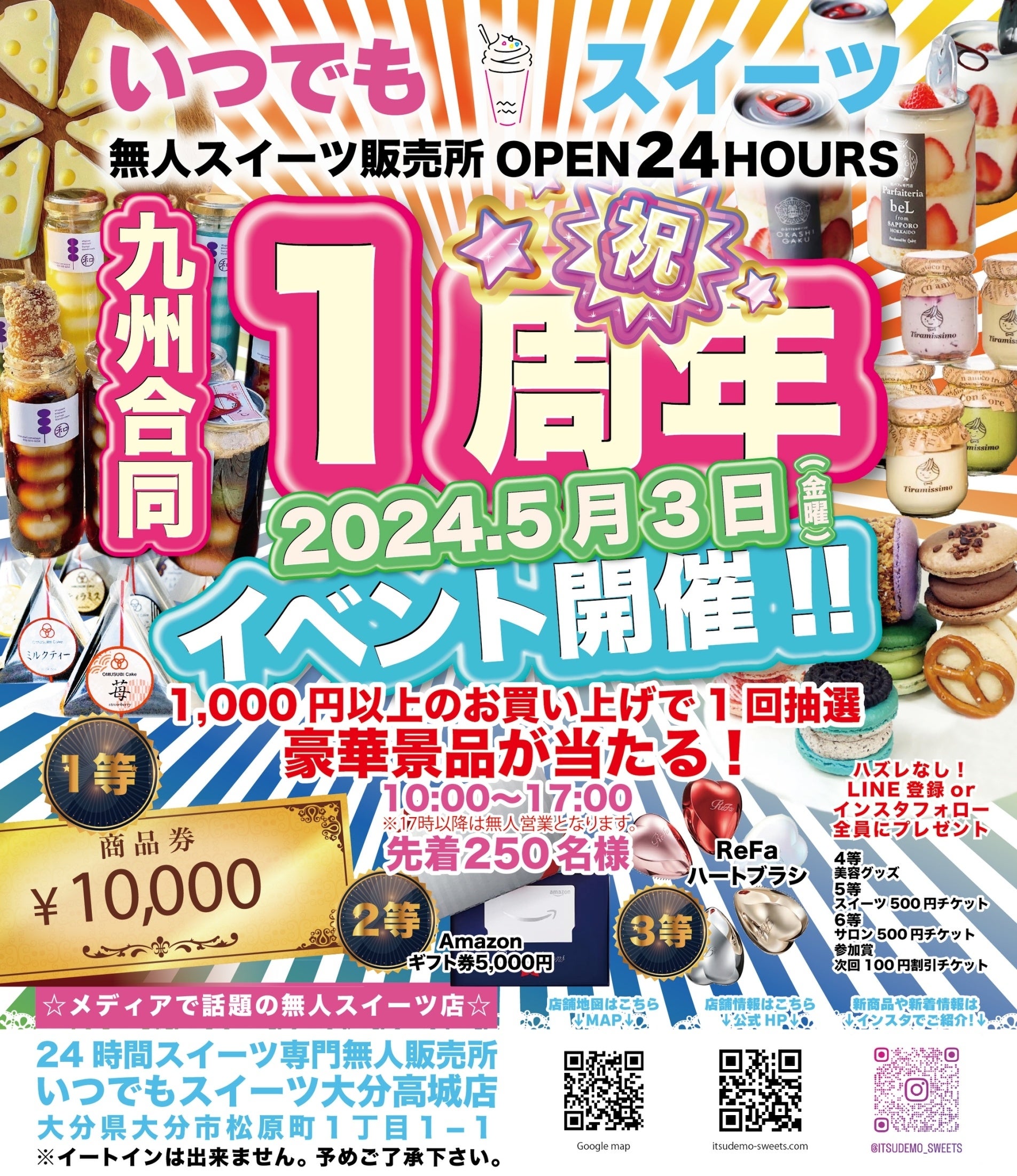 店舗名 :〜無⼈スイーツ販売店〜「いつでもスイーツ⼤分⾼城店/⼤分市」