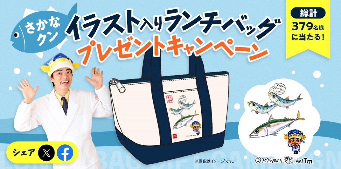 『素材市場』シリーズを対象に、「さかなクン」イラスト入りランチバッグが総計379名様に当たるプレゼントキャンペーンも実施中!