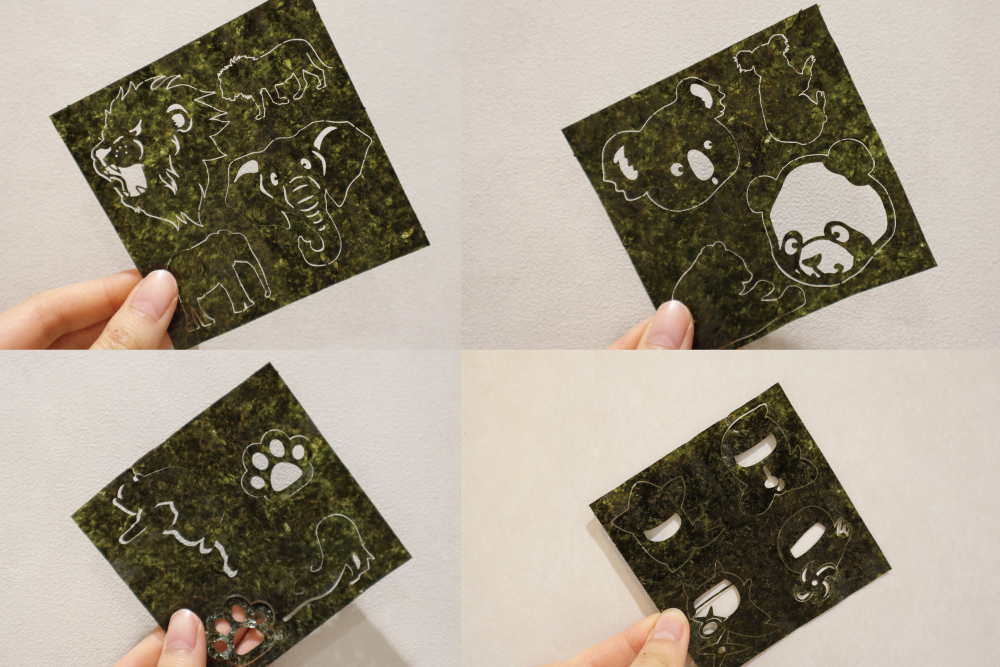 ・こだわりポイント:海苔は弊社のレーザーカット技術を活用した「のりあーと®」を使用。デザインした海苔をつなぎ目から切り離すだけなので、お子さんでもチャレンジしやすいです。自由に海苔を飾ってお昼の時間を楽しんでもらいたいです。