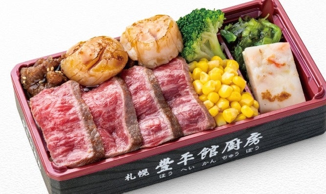前半 実演[札幌]札幌豊平館厨房/十勝和牛カルビ昆布熟成ボリュームステーキと帆立弁当(1折)2,916円 各日限定100折