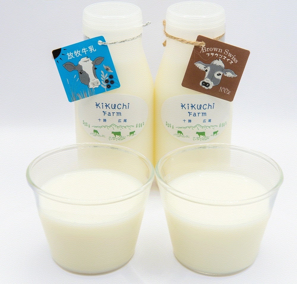 後半[広尾町]菊地ファーム/放牧牛乳とブラウンスイス牛乳の飲み比べセット(180ml×2本)320円 各日限定30本