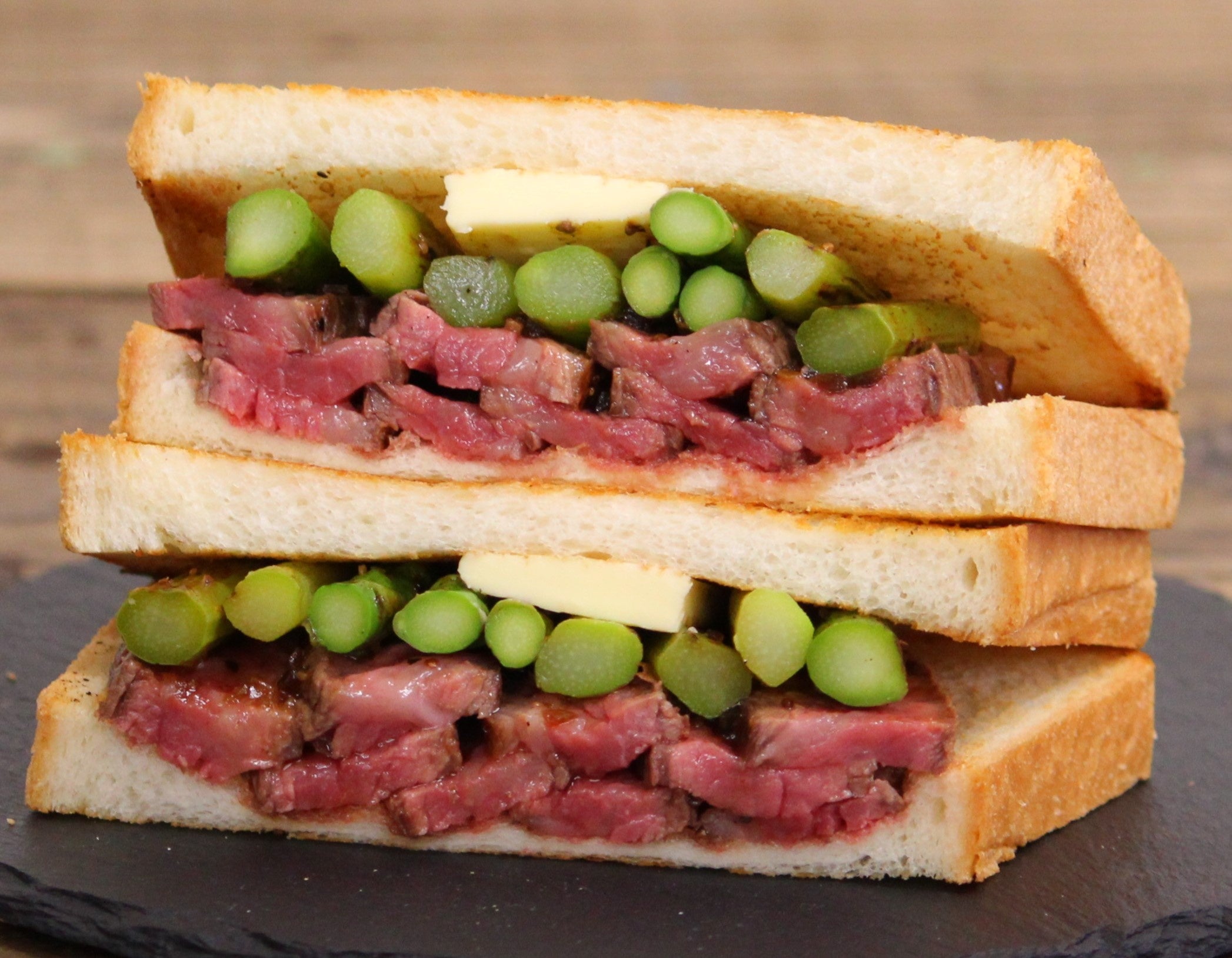 後半 実演[札幌]ESSEN SAPPORO/道産アスパラと十勝ハーブ牛のステーキサンド(1パック)2,160円 各日限定50パック