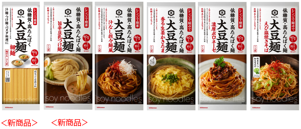 ・麺は、大豆を50%配合した低糖質・高たんぱく麺「キッコーマン 大豆麺 細麺」(※)使用。