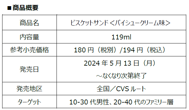 森永製菓株式会社(東京都港区芝浦、代表取締役社長・太田 栄二郎)は、お店で手作りのシュークリーム専門店(国内約 273 店舗・海外 10 ヵ国と2地域に202店舗を展開中(※2024年3月末時点 ※ビアードパパのみ))の「ビアードパパの作り立て工房」を運営する株式会社DAY TO LIFE(大阪市北区、代表取締役・杉内 健吉)とコラボレーションした「ビスケットサンド<パイシュークリーム味>」を、2024年5月13日(月)から期間限定で新発売いたします。