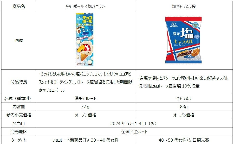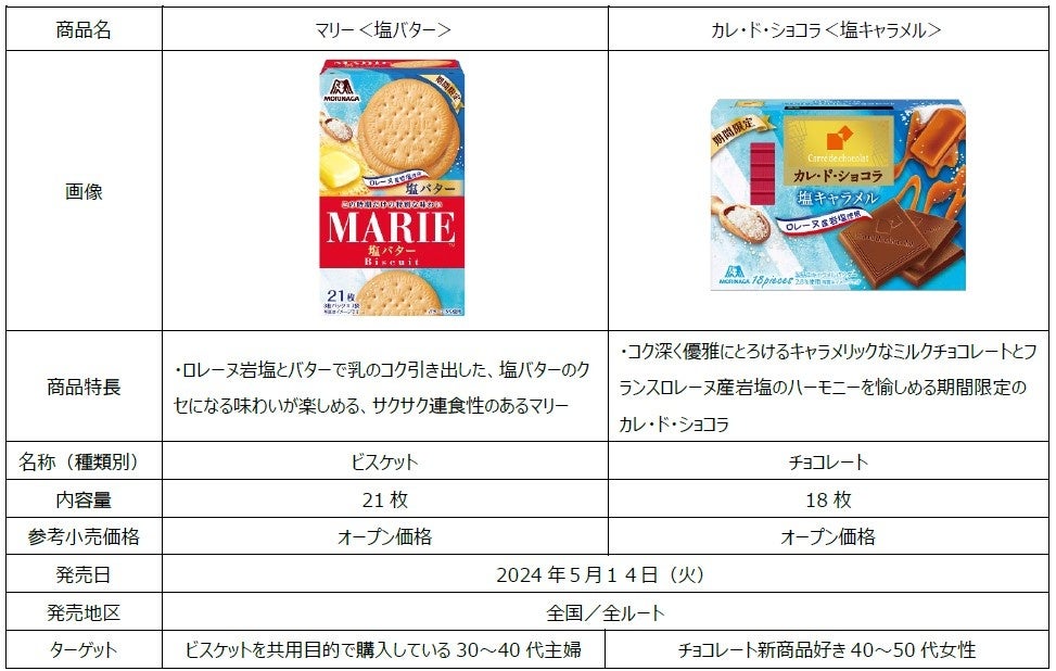 森永製菓株式会社(東京都港区芝浦、代表取締役社長・太田 栄二郎)は、「マリー<塩バター>」「チョコボール<塩バニラ>」「カレ・ド・ショコラ<塩キャラメル>」を2024年5月14日(火)より期間限定で新発売いたします。