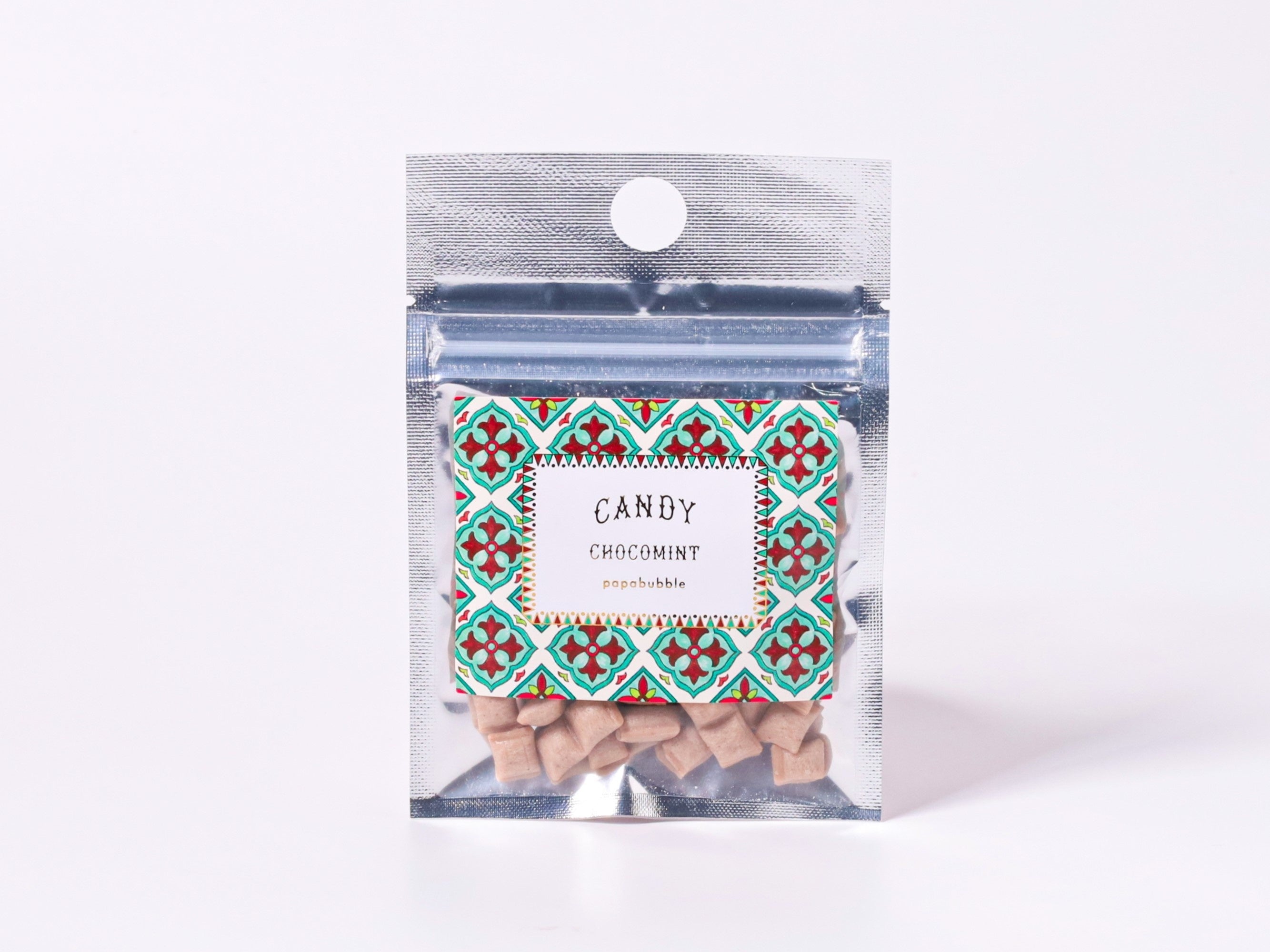 タブレット感覚で食べられるチョコミントが今年も登場です。とても小さい「プチチョコミント」ですが、第一弾で発売した「チョコミントミックス」と同じように、薄く伸ばしたキャンディでチョコレートを包む方法で作られています。サイズが小さいため、よりサクサクとした食感を味わうことができるので、噛んで楽しんでいただきたいキャンディです。