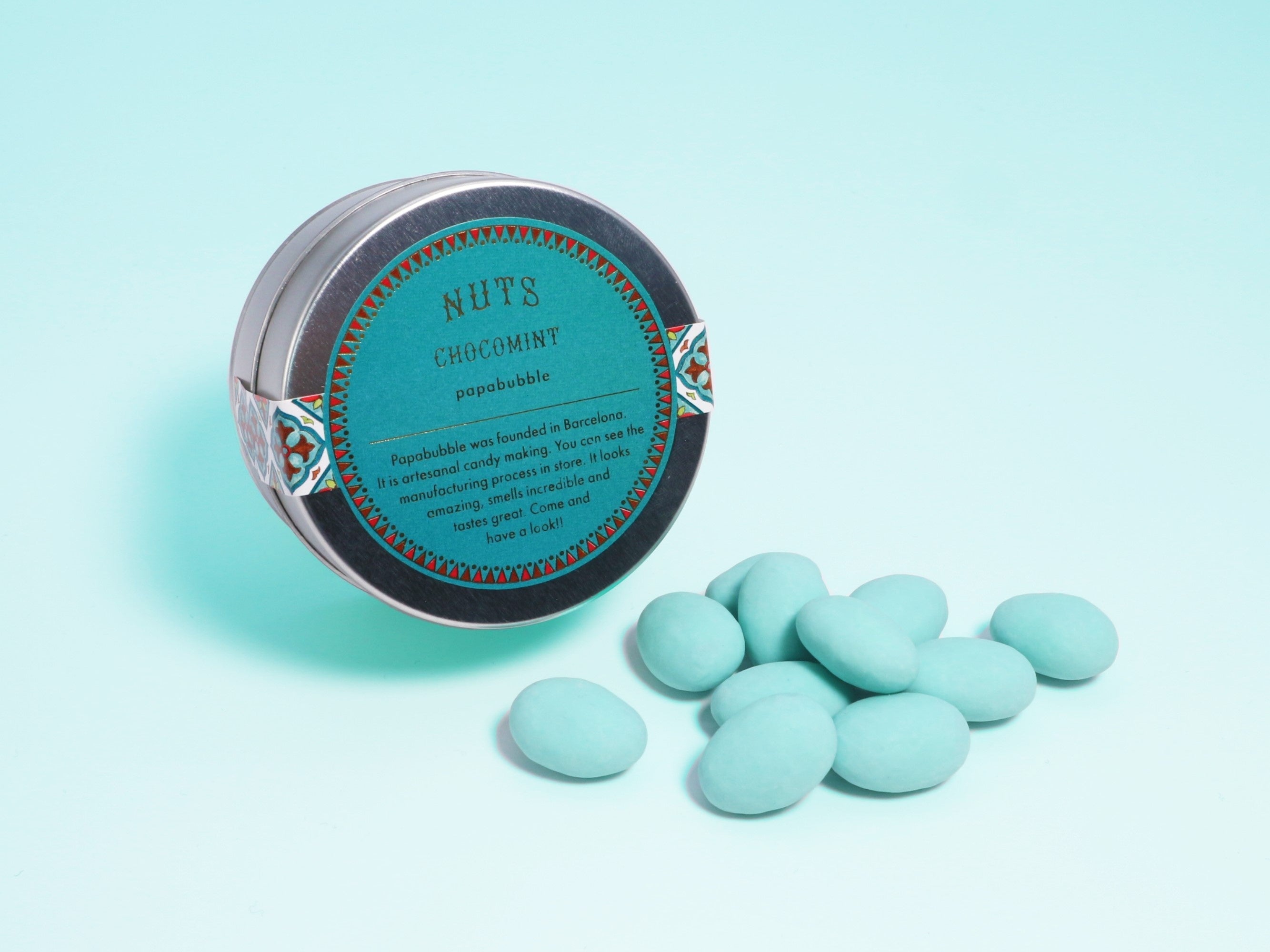 昨年ご好評をいただいた、パパブブレの缶入りナッツチョコミントが再登場します。アーモンドをしっかりローストして香ばしさを引き出したナッツを、二層のチョコレートでコーティングしました。一層目はナッツプラリネ(ナッツペースト)を加えたミルクチョコレート、二層目にはミントホワイトチョコレートを使用し、甘さと爽快感を同時に楽しめるこだわりの一品に仕上げました。