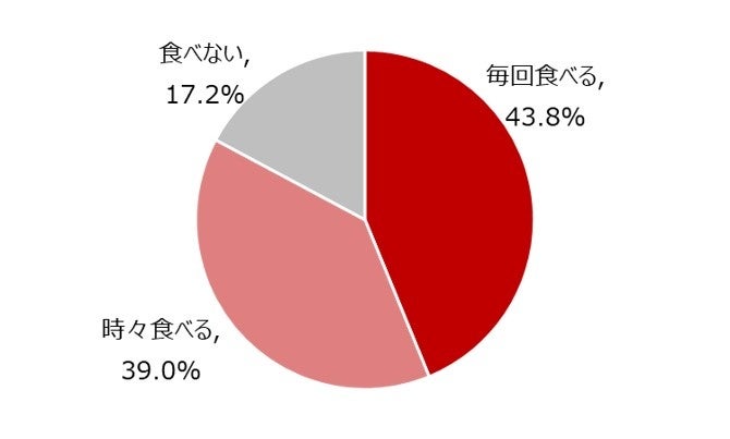 「塾前食」とは、朝・昼・晩の3食に加えて、塾開始前に自宅や塾で食べる軽食のことです。ハウス食品が明光義塾と協力して調査を実施したところ、塾に通っている中学生のうちおよそ8割が「塾前食」を食べていることが分かりました【図1】。