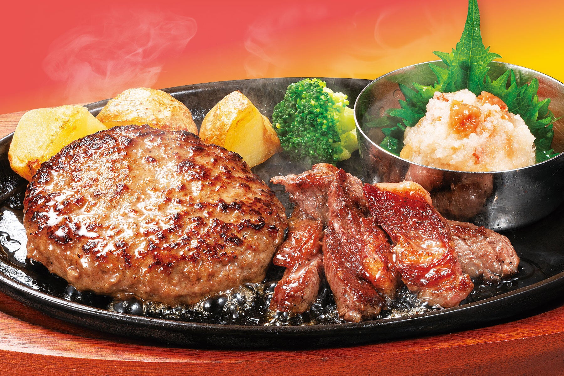 フェアメニュー:梅みぞれ芳醇国産牛ステーキ、梅みぞれハンバーグ130g&国産牛切り落としステーキ60gランチ