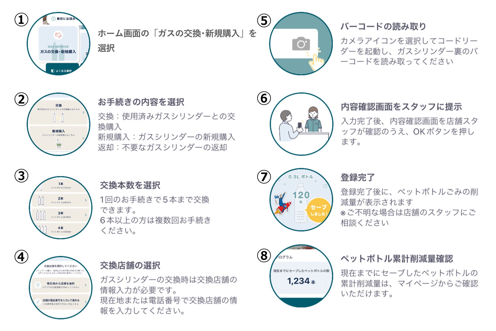 従来のガスシリンダー交換は、店頭での台帳記入が必要で、お客さまもお店側にも手間がかかっていました。ソーダストリーム公式アプリを使うと、スマホで面倒なお手続きが簡単シンプルに。また、ご自身が削減したペットボトルの累計削減量も確認できるから、エコでエシカルなアクションを実感できます。