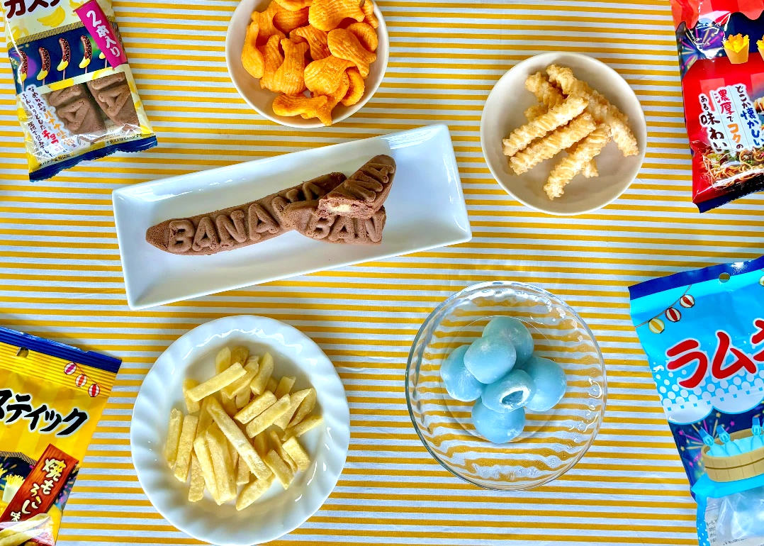 夏の風物詩である夏祭りや縁日をテーマとした「夏祭りシリーズ」のお菓子5品が登場します。屋台をイメージしたカラフルでポップなパッケージのほか、お好み焼きや焼きそばを連想させる縁日ソース味のひねり揚げ、金魚すくいをイメージした金魚型のスナック、お祭りの定番チョコバナナまで、思わず屋台に遊びに来たような感覚になること間違いなしです。また近年SNSで話題の“おうち縁日”のアイテムとしても活躍します。家族や友人と夏の思い出づくりにもおすすめの商品です。
