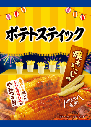 商品特徴:屋台の香ばしく焼いた焼とうもろこしをイメージしたポテトスティックです。