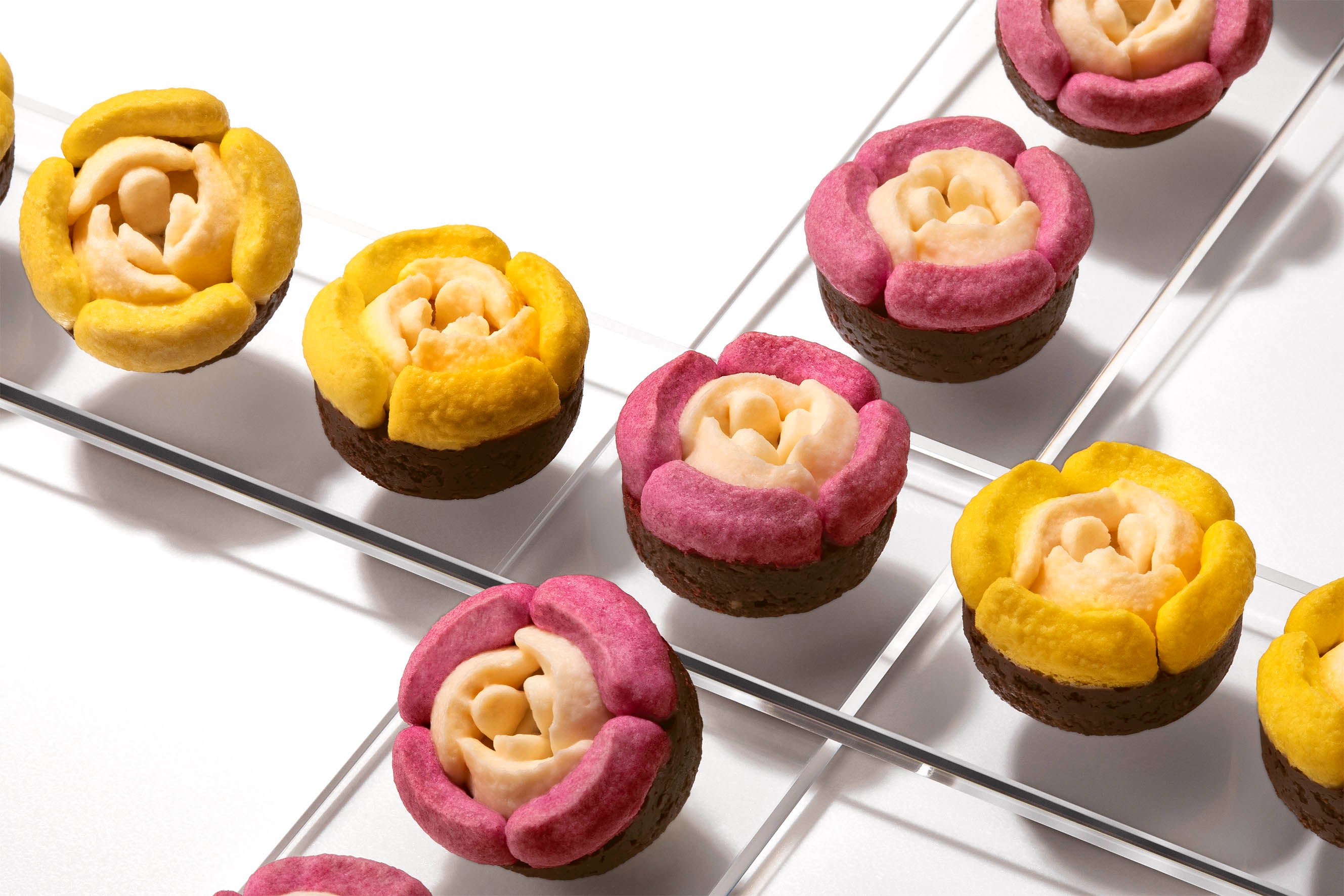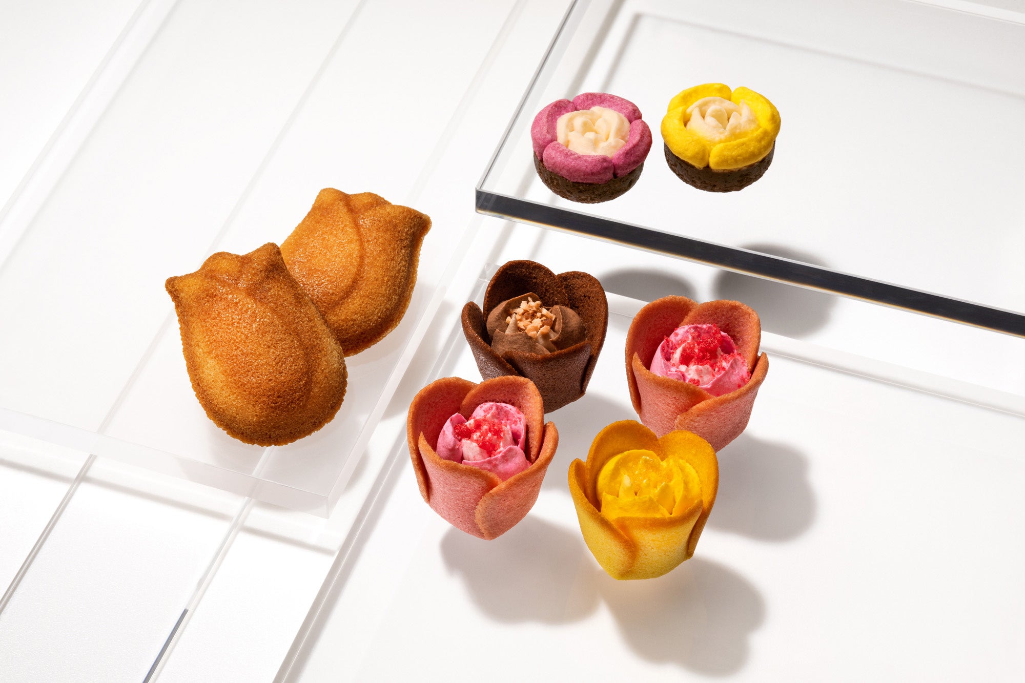 繊細なラングドシャクッキー細工のチューリップの中に、とろけるショコラクリームのローズを咲かせました。ブランドで最も愛されている、金井理仁の代表作です。甘酸っぱい「ベリー」、深みある「キャラメルナッツ」、爽やかな「パッションマンゴー」の3味のセット。一輪ごとに贅沢な美味しさが口いっぱいに広がる、まさに“スイーツの花園”を楽しめる一品です。