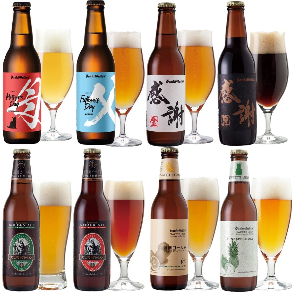 父の日IPAと母の日ヴァイツェン、“ありがとう”がストレートに伝わる感謝ビール<金>と<黒>、ゴールデンエールとアンバーエールに、夏限定のフルーツビール 湘南ゴールドとパイナップルエールを詰め合わせました。