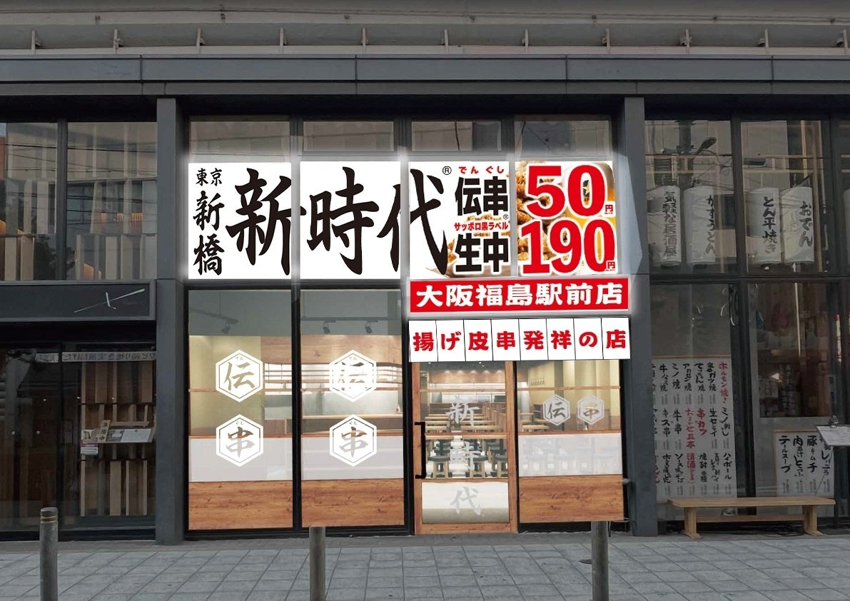 「新時代」は、累計販売本数2億本を超える『伝串』を名物とする、揚げ皮串発祥のお店です。