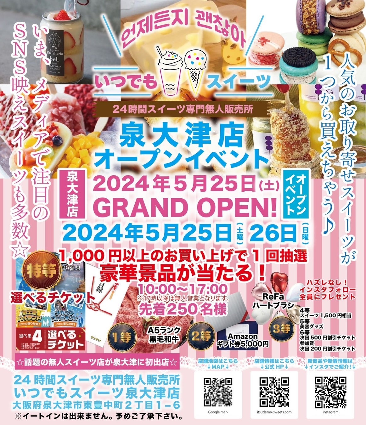 いつでもスイーツ大阪府泉に2店舗同時出店!!