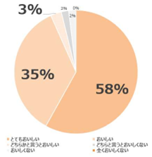 (「とてもおいしい」:58%、「おいしい」:35%、