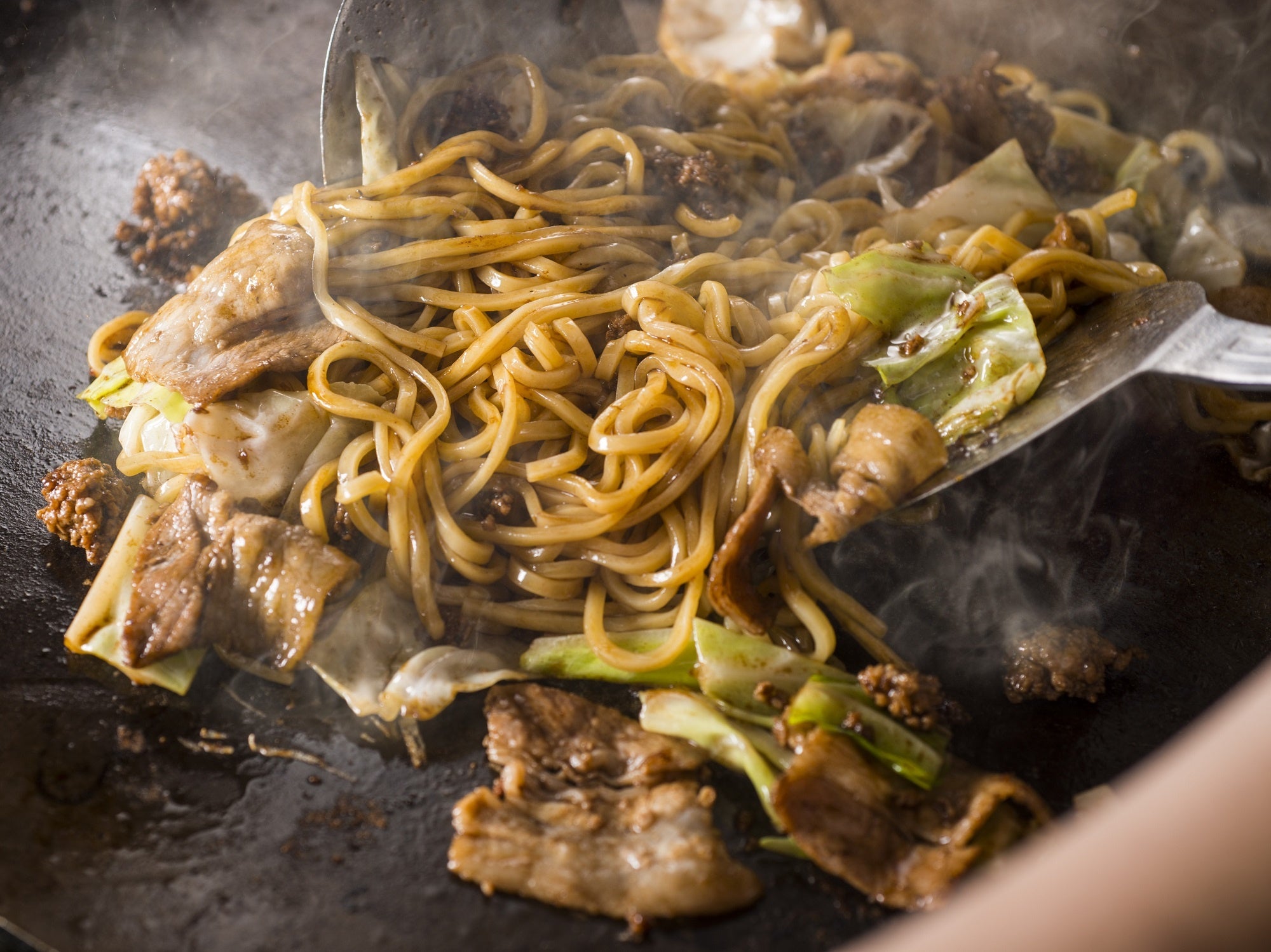 オリジナルの麺とソースで焼き上げた、大人気「名物!夜鳴き鉄板焼きそば」を是非、ご賞味ください。