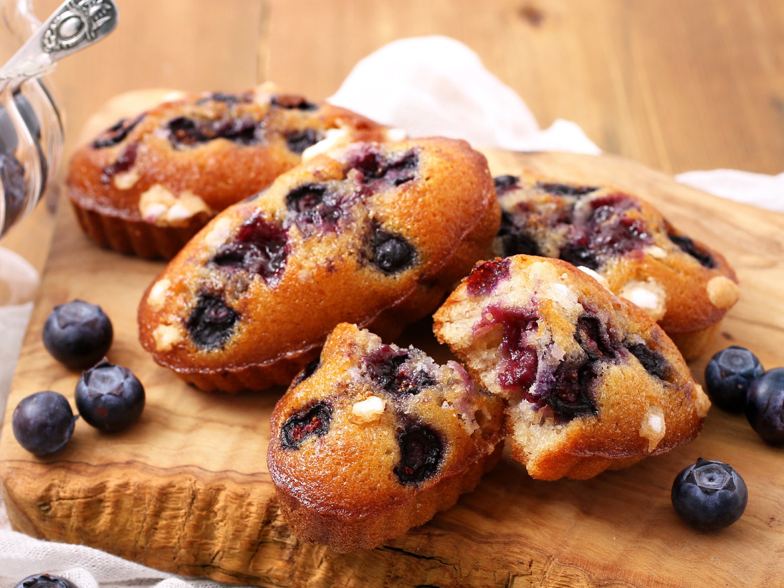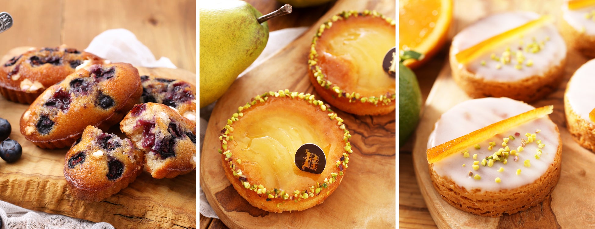 自慢のフィナンシェ生地に、ブルーベリーの果肉とコンフィチュールをのせて焼き上げました。