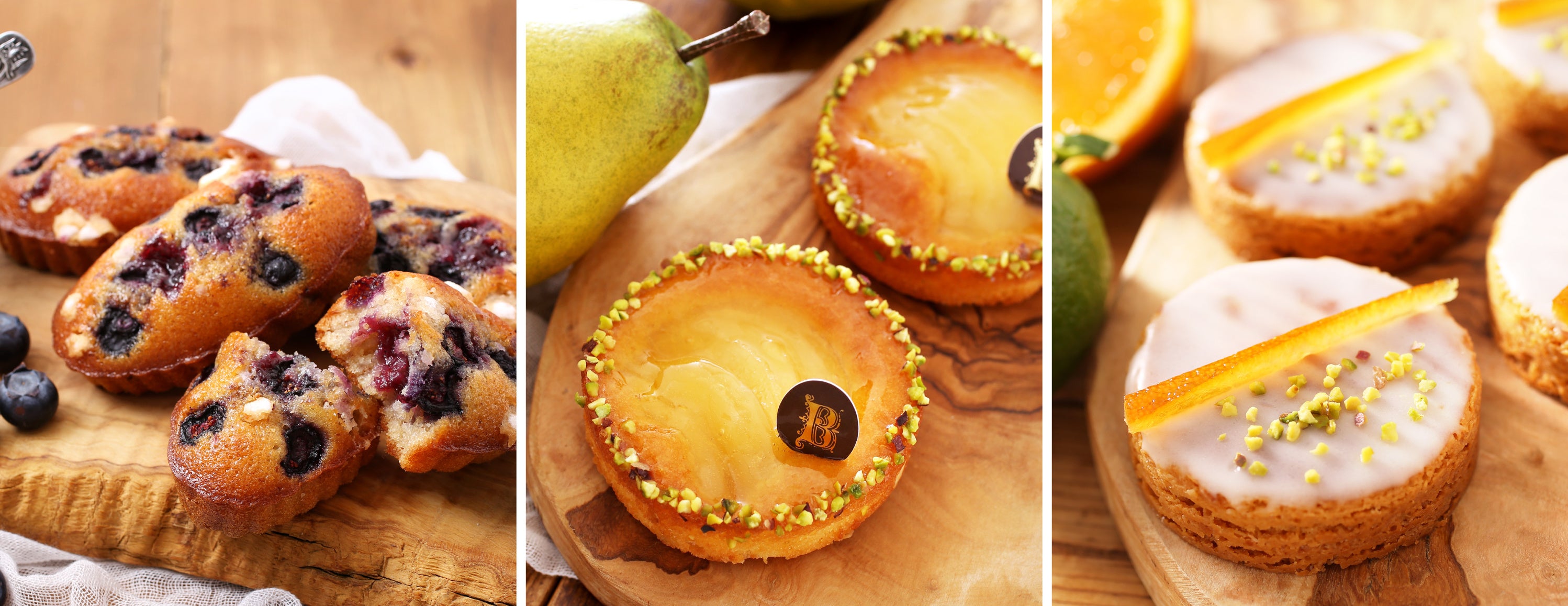 自慢のフィナンシェ生地に、ブルーベリーの果肉とコンフィチュールをのせて焼き上げました。