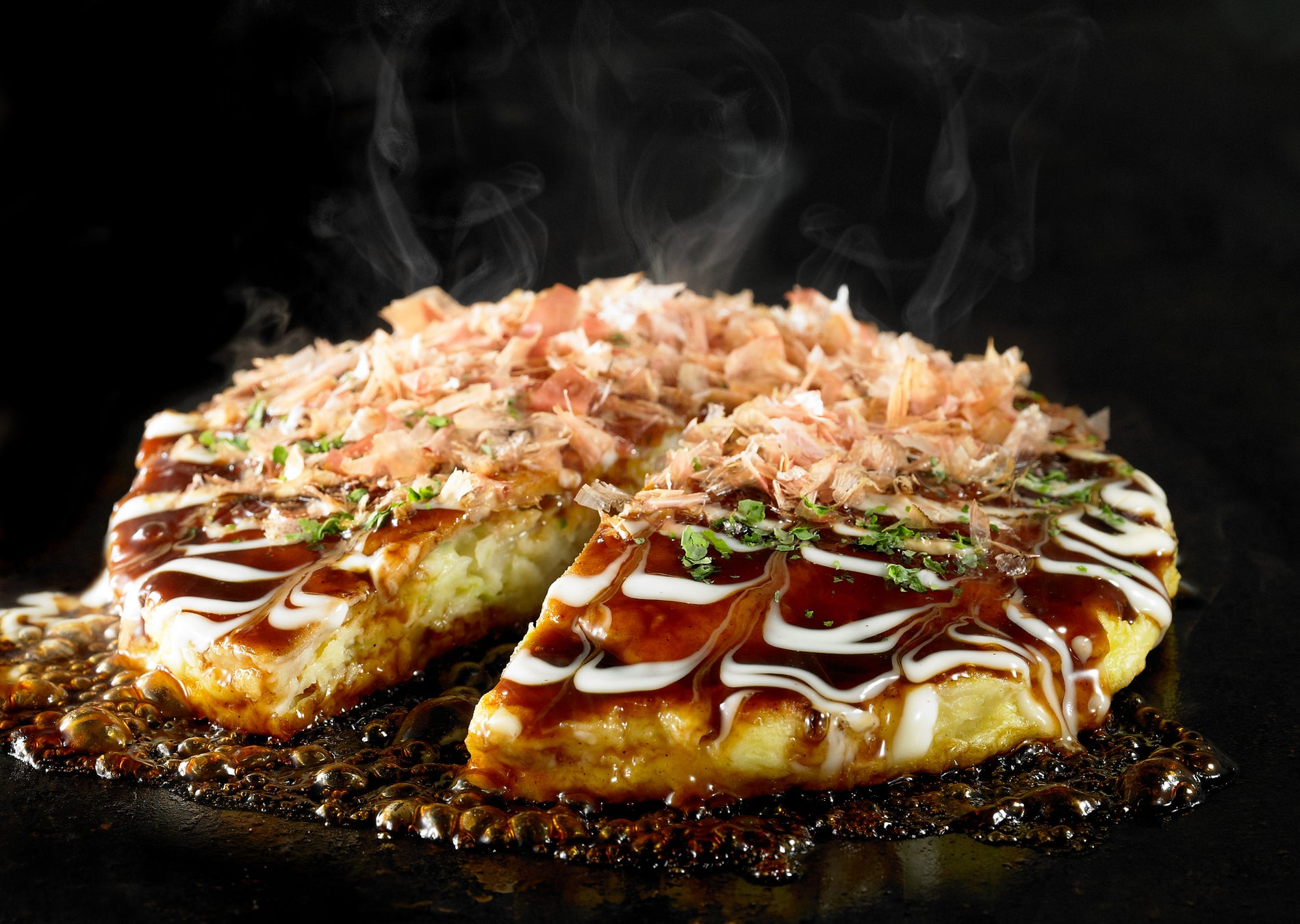 千房特製のお好み焼ミックス粉を使用。豚肉の旨みをいかし、お好み焼をふっくらと焼きあげました。特製ソースが味の決め手です。
