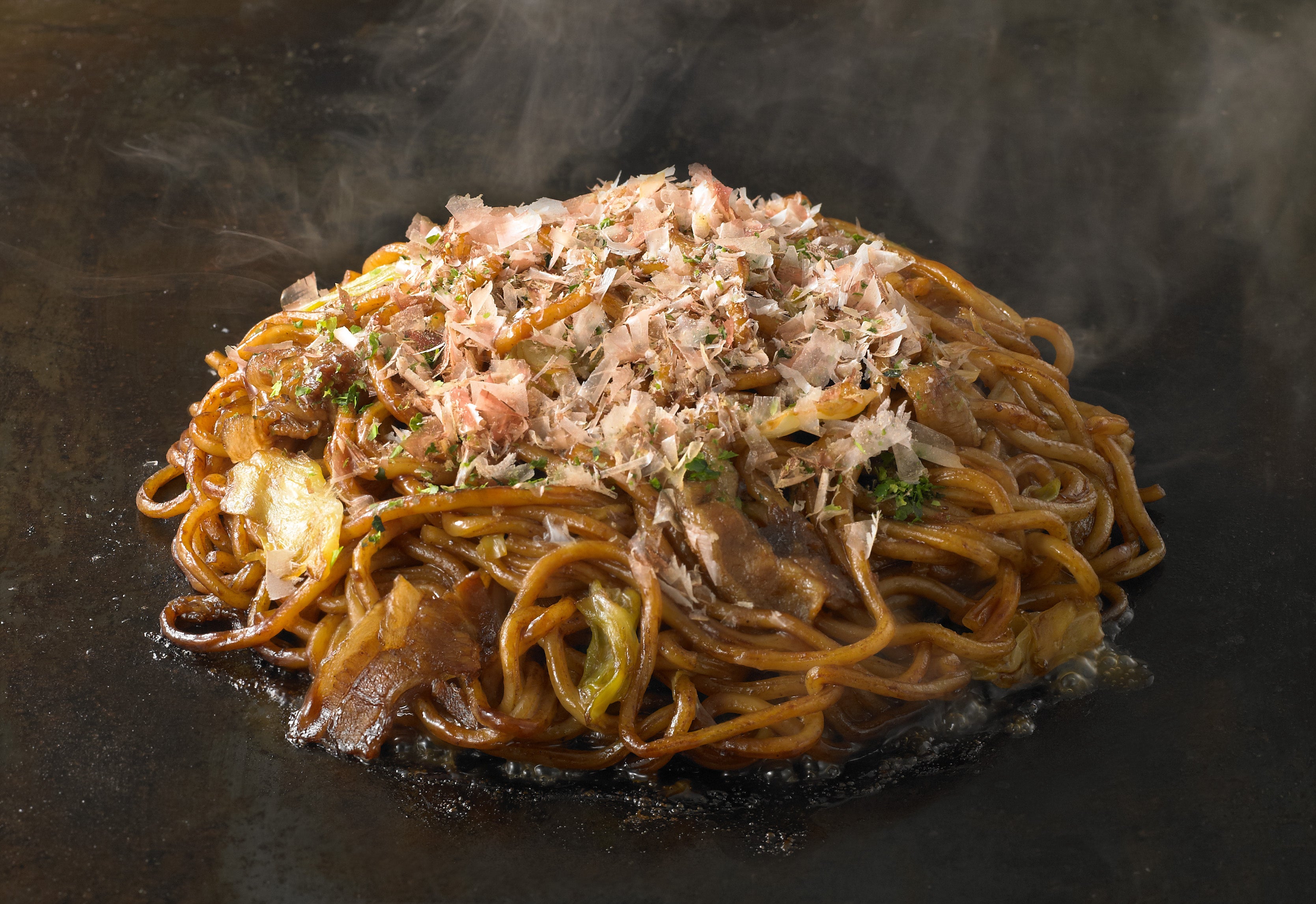 オリジナルの太めの中太麺を使用。豚肉と野菜を加えソースを絡めて焼き上げた焼そばです。温めた後、仕上げにコクと旨みを醸し出す後がけ濃厚ソースが美味しさの決め手です。トレー入りなのでどこでも電子レンジで温めてお召し上がりいただけます。