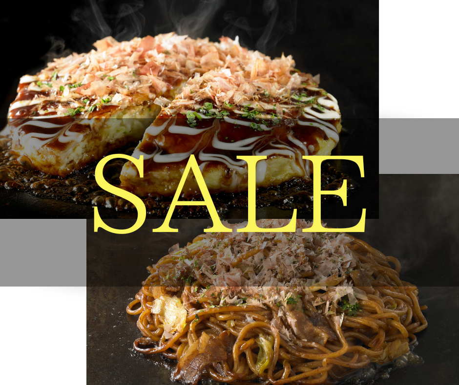 千房特製のお好み焼ミックス粉を使用。豚肉の旨みをいかし、お好み焼をふっくらと焼きあげました。特製ソースが味の決め手です。
