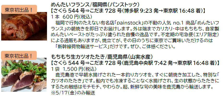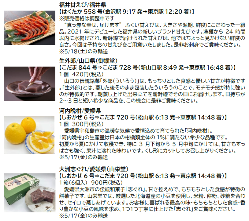 【東海道マッハ便(東海道新幹線)を活用したおすすめ商品】