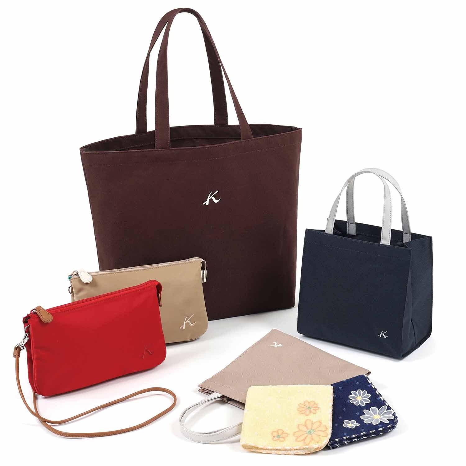 (①トートバッグ、②ショルダーバッグ、③タオルハンカチ、④ショッピングバッグ) 13,000円
