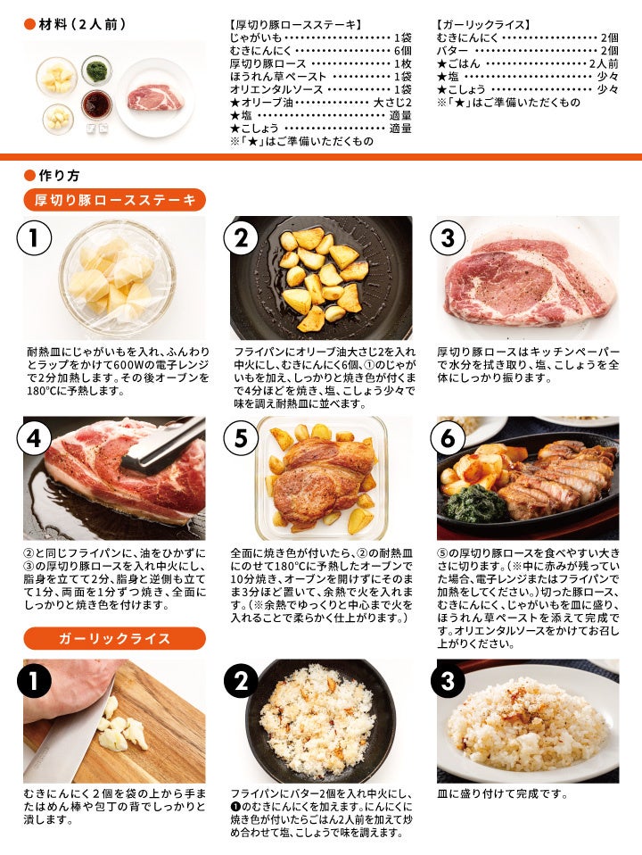 ① 厚切り豚ロースステーキとガーリックライス