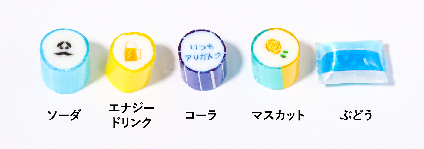 感謝の気持ちを伝える、「いつもアリガトウ」の文字入り柄や、「父」の顔を漢字に見立てたキュートなたれ眉が特徴的な柄など、小さなキャンディに感謝の気持ちを込めた爽やかなキャンディミックスです。フレーバーは、お父さんがリフレッシュできるような、コーラやソーダなど爽快感のあるドリンクフレーバーで仕上げました。