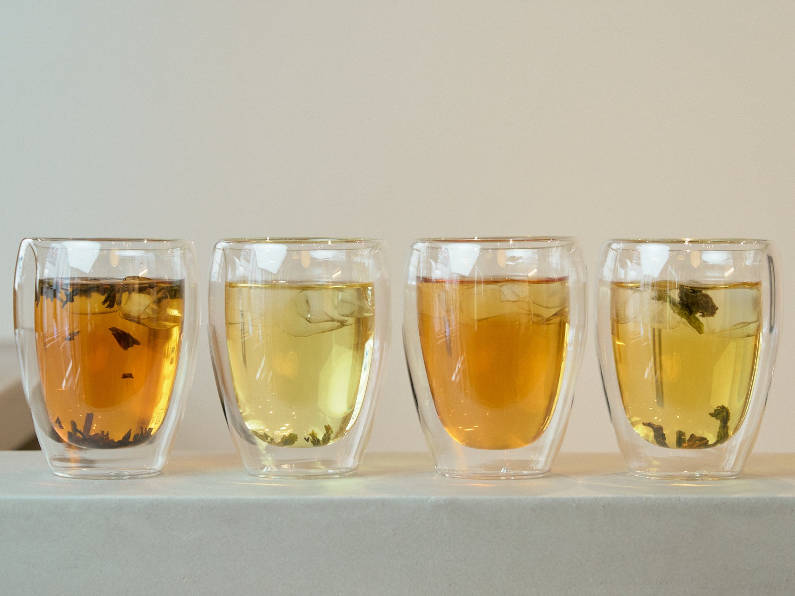 左から) 台湾凍頂烏龍 / ジャスミン茶 / ライチ紅茶 / 台湾四季春