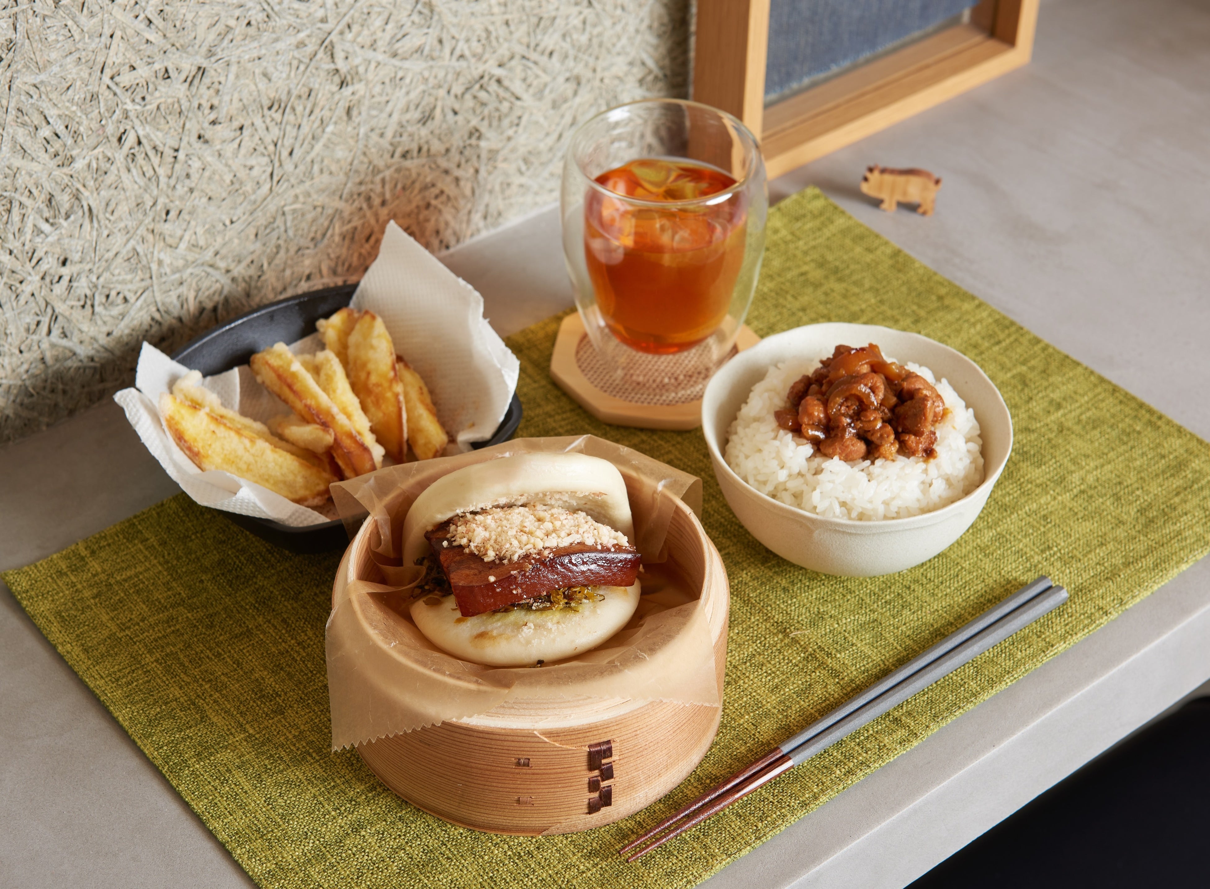 セットメニュー[刈包+ご飯+甘梅ツマイモポテト+ドリンク]