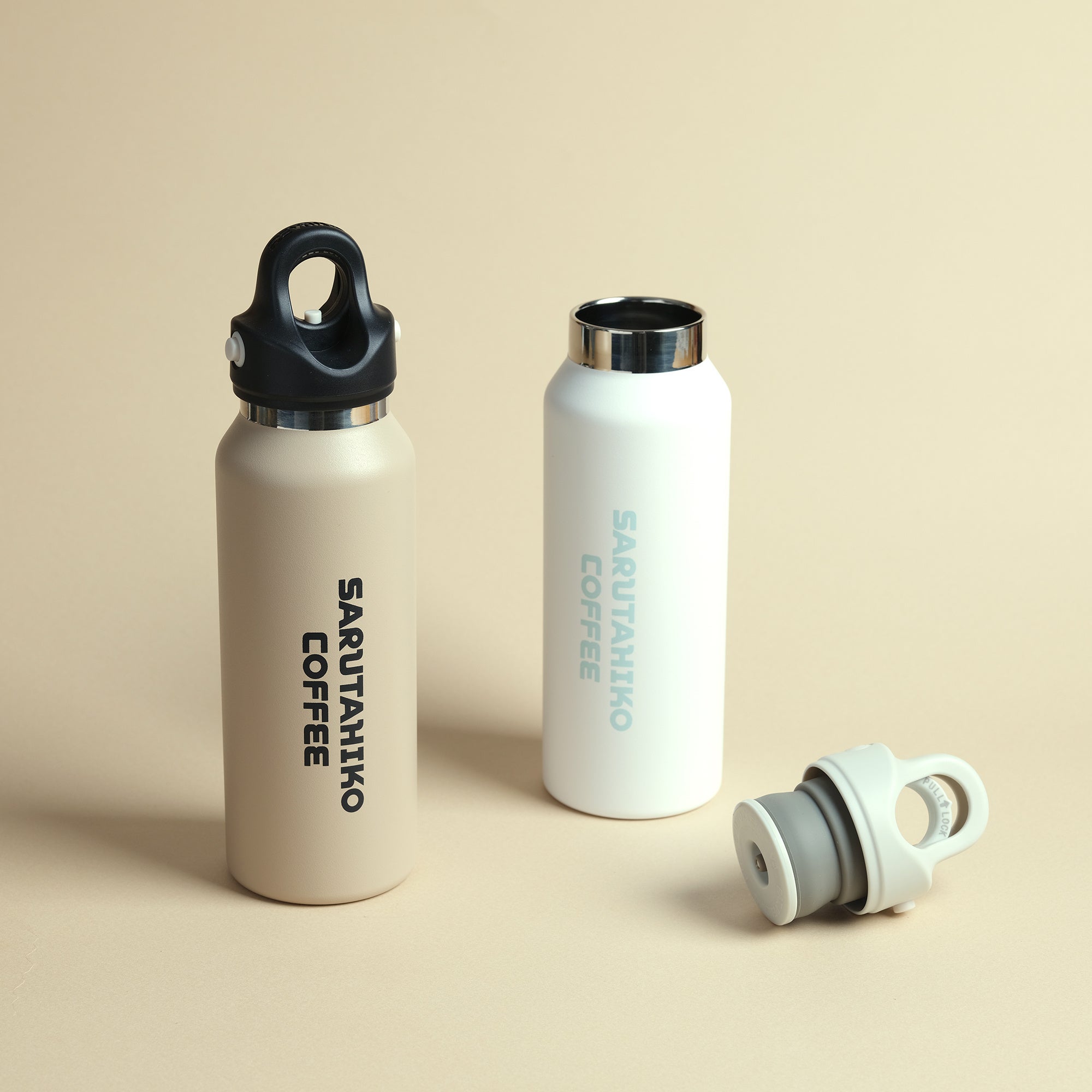 猿田彦珈琲のグッズで人気のある「REVOMAX」の第二弾として、持ちやすく収まりの良い形状に変え二色展開で登場。新色のカフェラテを思わせるサンドベージュと定番色のマットホワイトに猿田彦珈琲のロゴが入った男女問わず使いやすいデザインです。