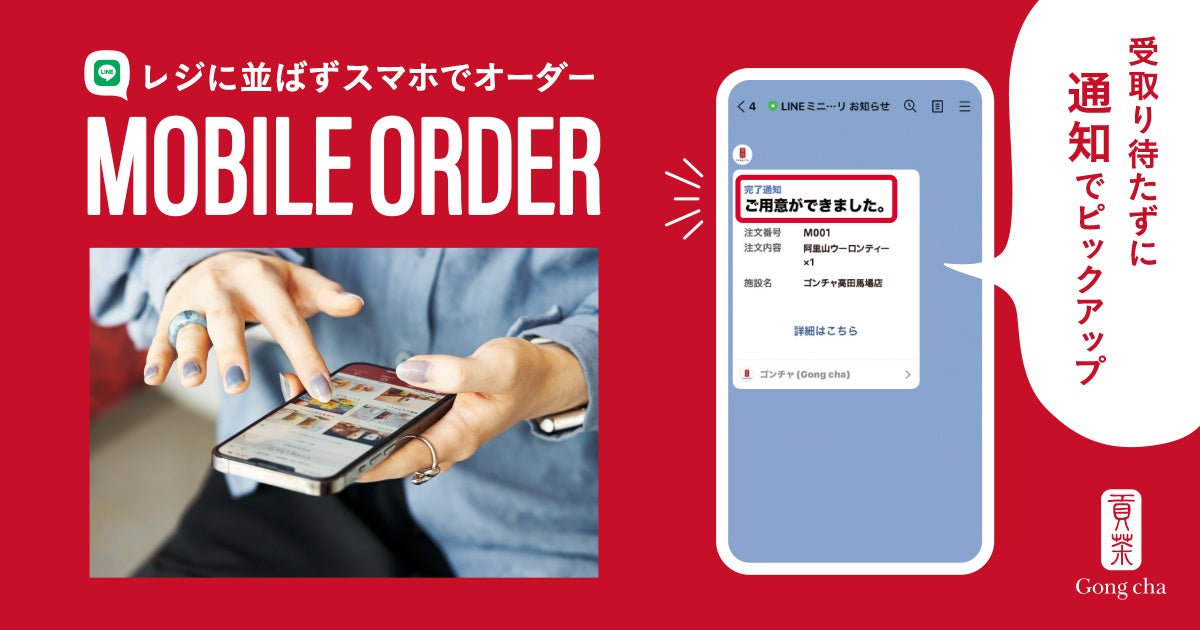 ゴンチャでは、モバイルオーダーで事前にご注文&お支払いをしていただくことで、レジに並ばずにお店に着いたらすぐに商品をお受取りいただくことが可能です。また、商品完成後のLINE通知ですぐに商品を受取ることができるため、並ぶ時間やお待ちいただく時間を有効活用いただけます。ゴンチャは、おしゃべり歓迎のグローバルティーカフェ。ぜひこの機会に、モバイルオーダーをご利用いただき、ティーを通じたかけがえのない時間を大切な方とお楽しみください。