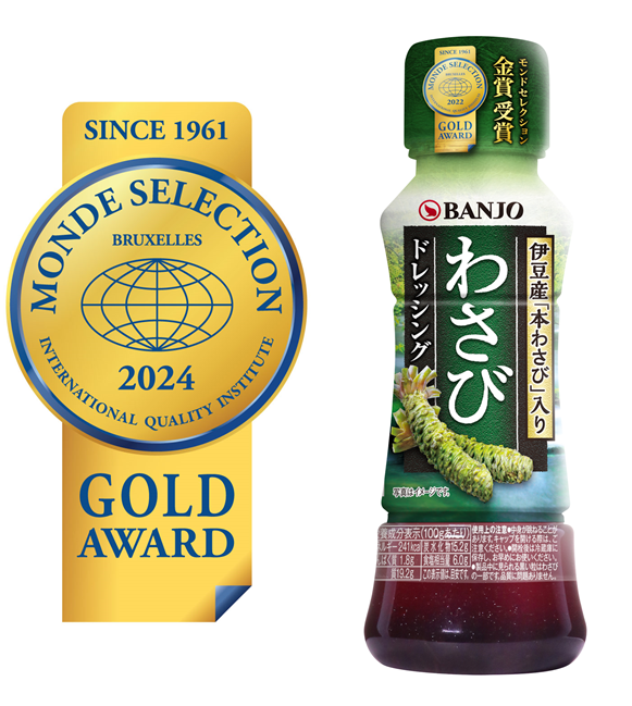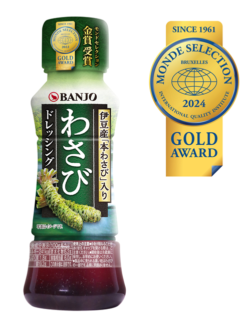 万城食品は、毎日の食卓に彩りを与える商品として、素材にこだわった「わさびドレッシング」、「うま塩ドレッシング」、「わさびフレンチソース」などのドレッシングも開発・販売しています。特に今回受賞した「わさびドレッシング」は、伊豆産本わさびの清涼な香りと辛味に、真昆布と焼きあごの出汁の旨味を効かせ、「ツーン」とした辛味のアクセントと本格的な和風仕立ての味わいを美味しくお楽しみいただける人気商品です。