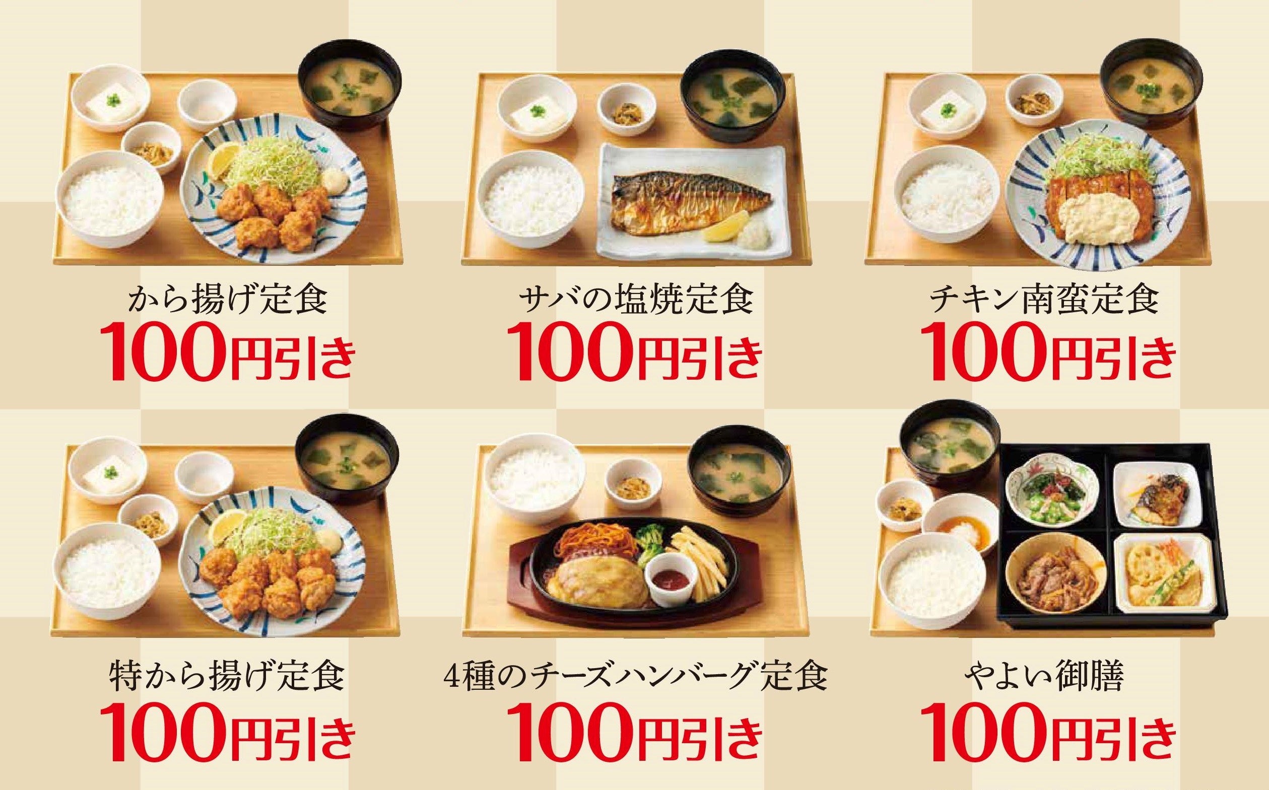 このたび日本国内の「やよい軒」では、多くの方に「やよい軒」の定食を楽しんでいただきたいという思いから、公式アプリ限定で人気の定食が何度でも 100 円引きの特別価格でお召し上がりいただけるクーポン『なんどもパス』を配信いたします。