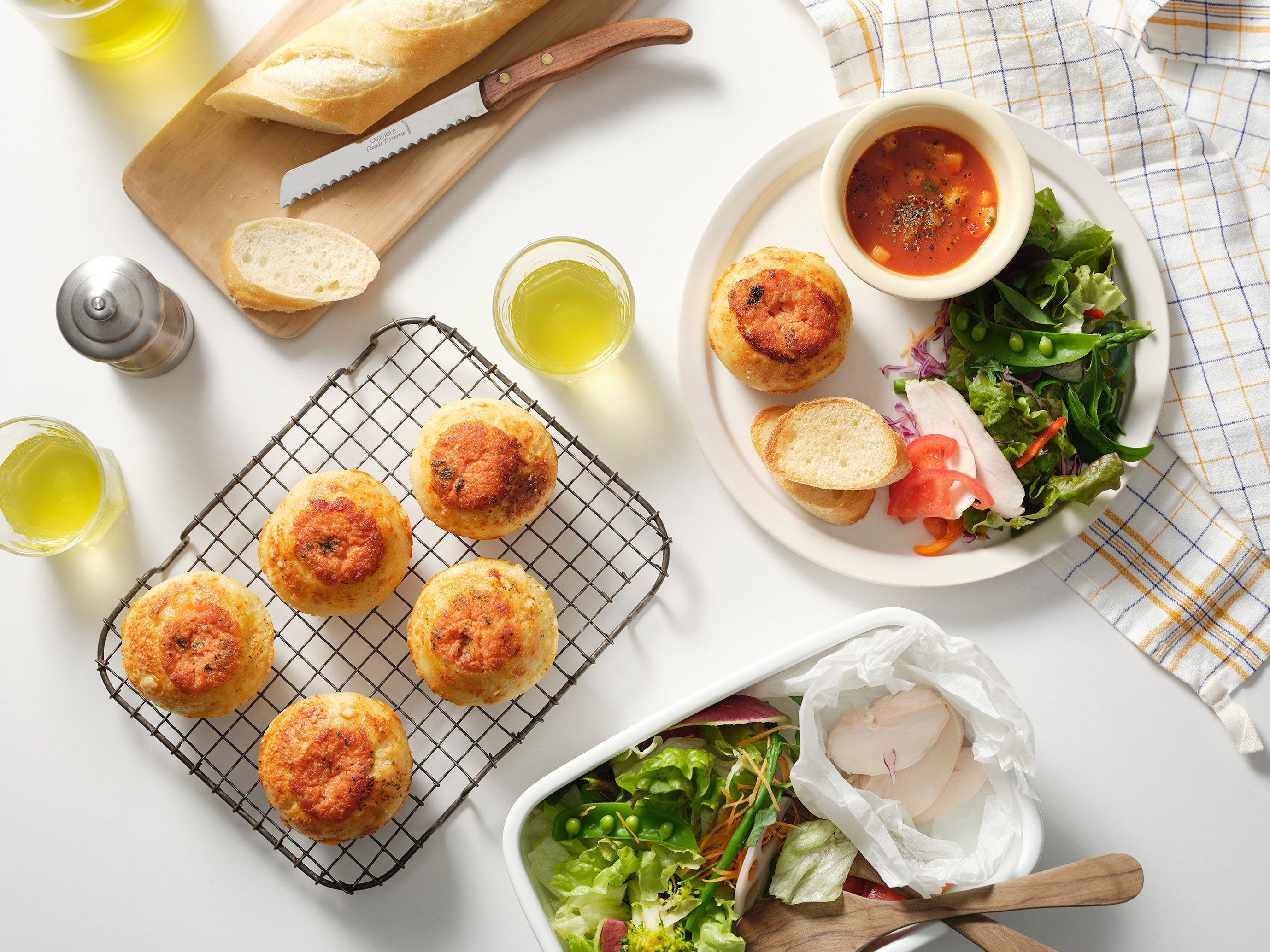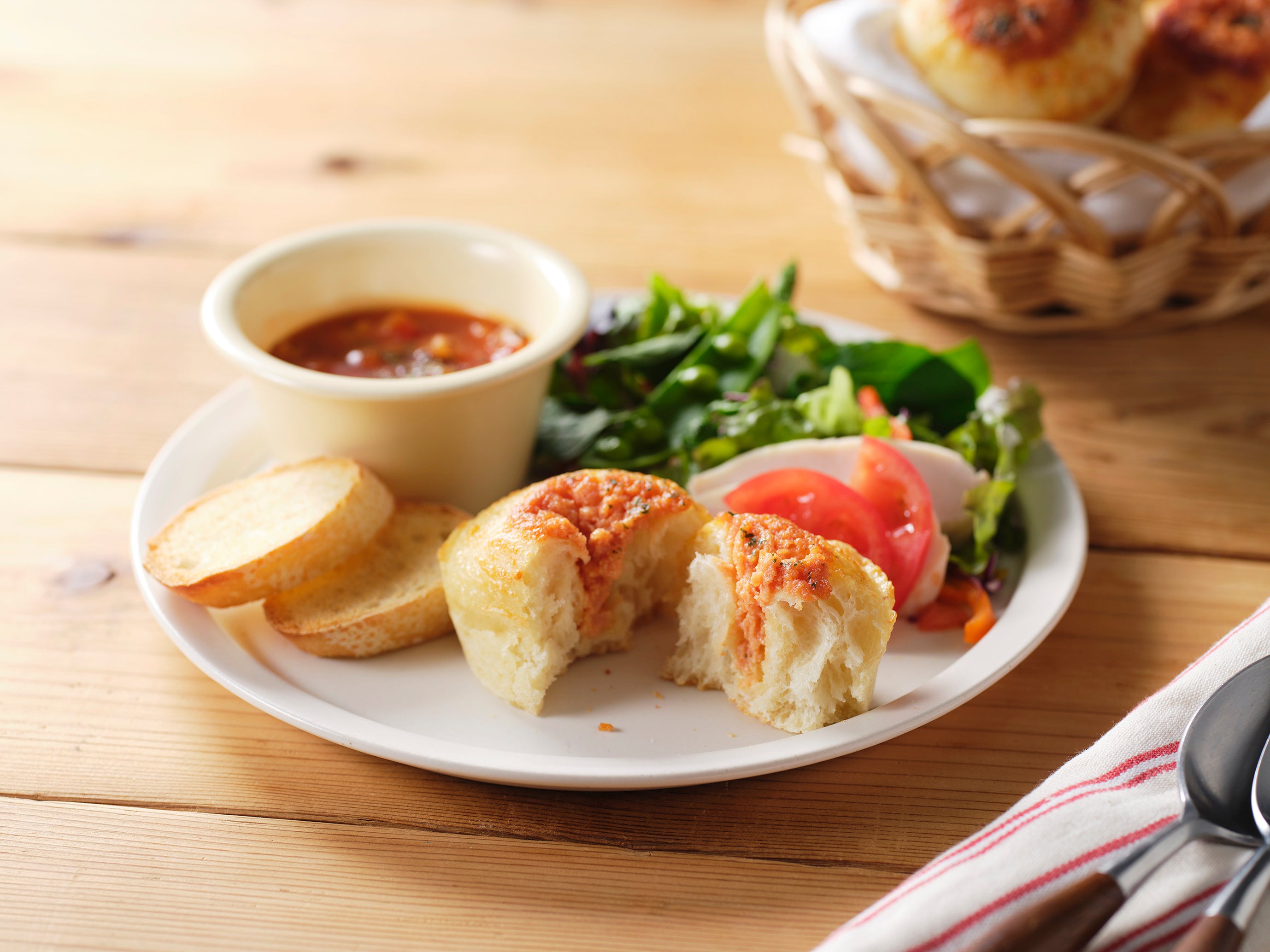 塩味がしっかり効いたフィリングとシンプルな生地のコントラストが絶妙で、後をひく味わいです。また、ガーリック等の香りが強い素材は使用していないため、時間帯を気にすることなくお召し上がりいただけます。