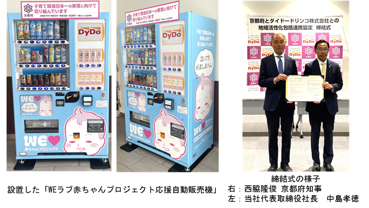 そしてこの度、この取り組みの一環として、「WEラブ赤ちゃんプロジェクト応援自動販売機」(以下、本自販機)を5月14日、イオンモールKYOTOに設置いたしました。
