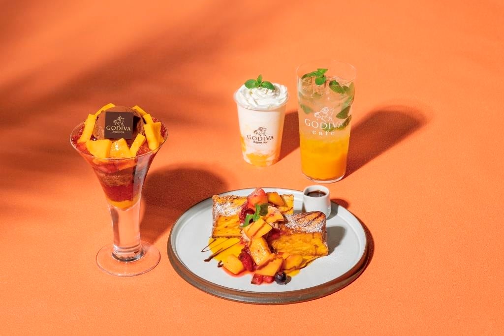 旬のマンゴーと4種のベリーを使用した、夏季限定のフレンチトースト。甘酸っぱいフルーツと、ゴディバのダークチョコレートソースのペアリングをお楽しみください。