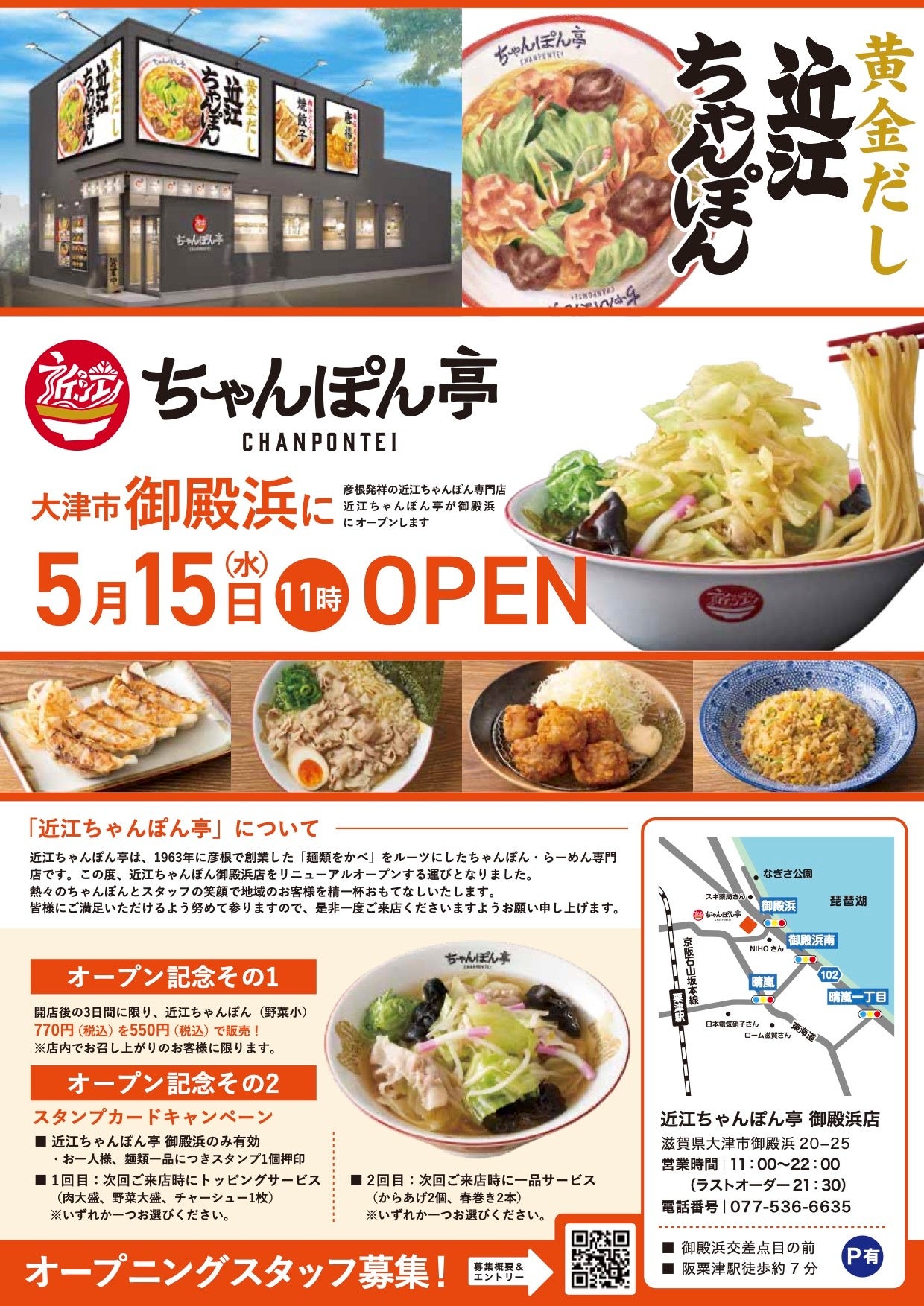 これから近江ちゃんぽん亭御殿浜店をどうぞよろしくお願いいたします。