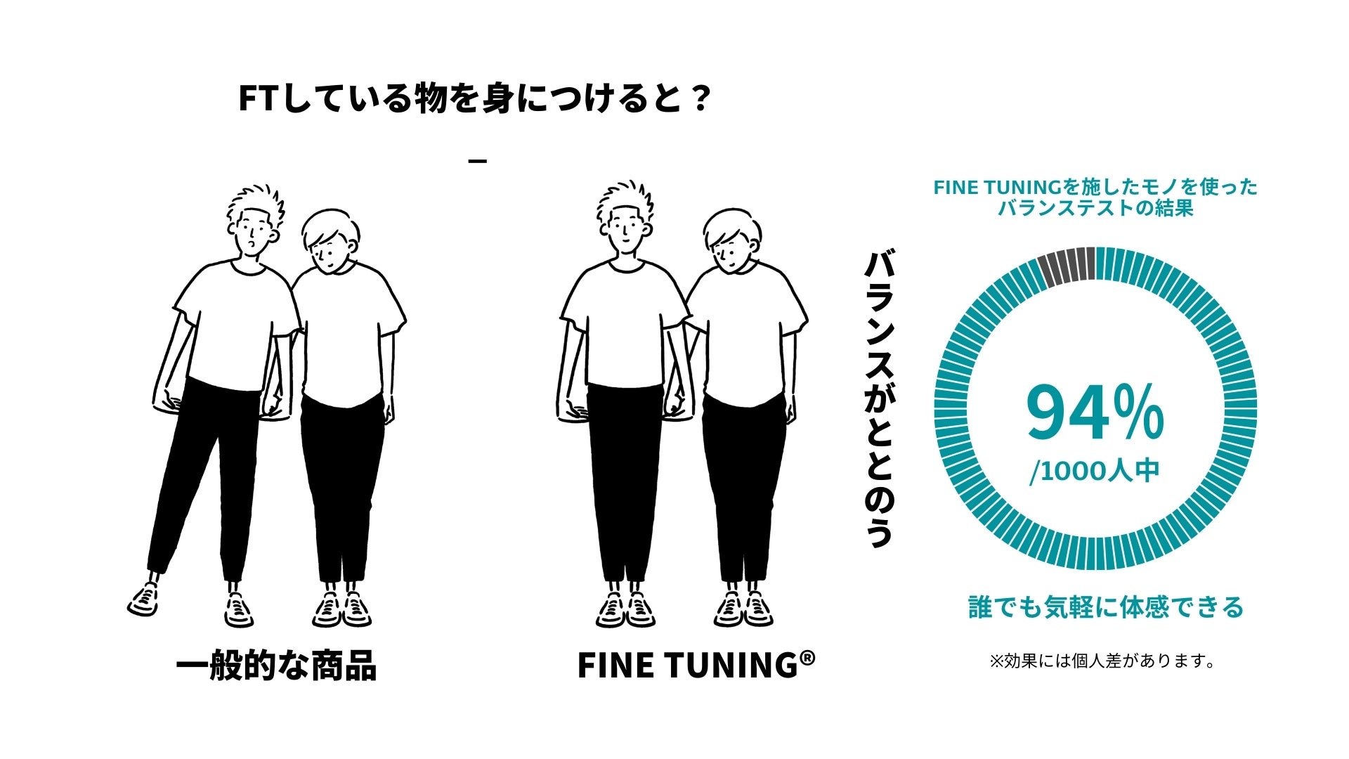 量子最適化技術「FINE TUNING」は、対象物を量子レベルで微調整する加工技術です。技術を適用した商品を身につけることで、カラダのバランスが整う体感を体験することができます。
