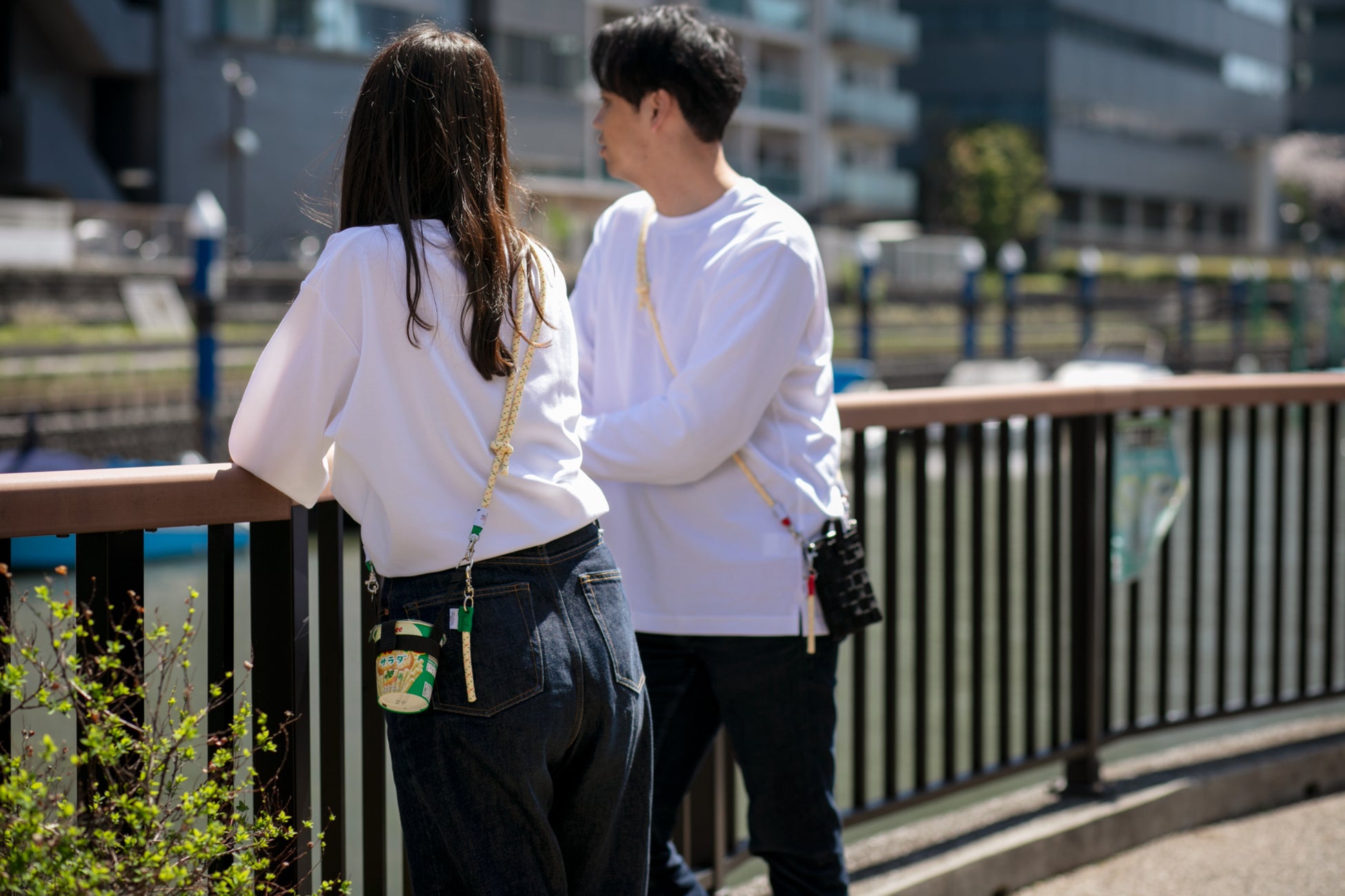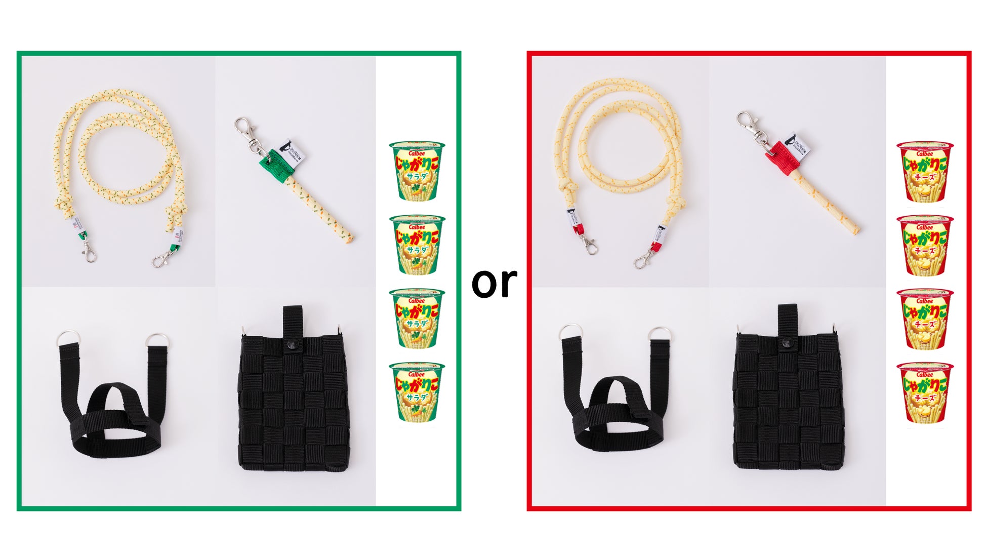 2023年3月には第1弾としてスニーカーを発売。第2弾となる今回は、本橋テープと「じゃがりこ」専用ホルダーを共同開発しました。「じゃがりこ」にピッタリ合うようにつくられた特注品で、「じゃがりこ」を肩から下げてお散歩やレジャーにお出かけいただけます。