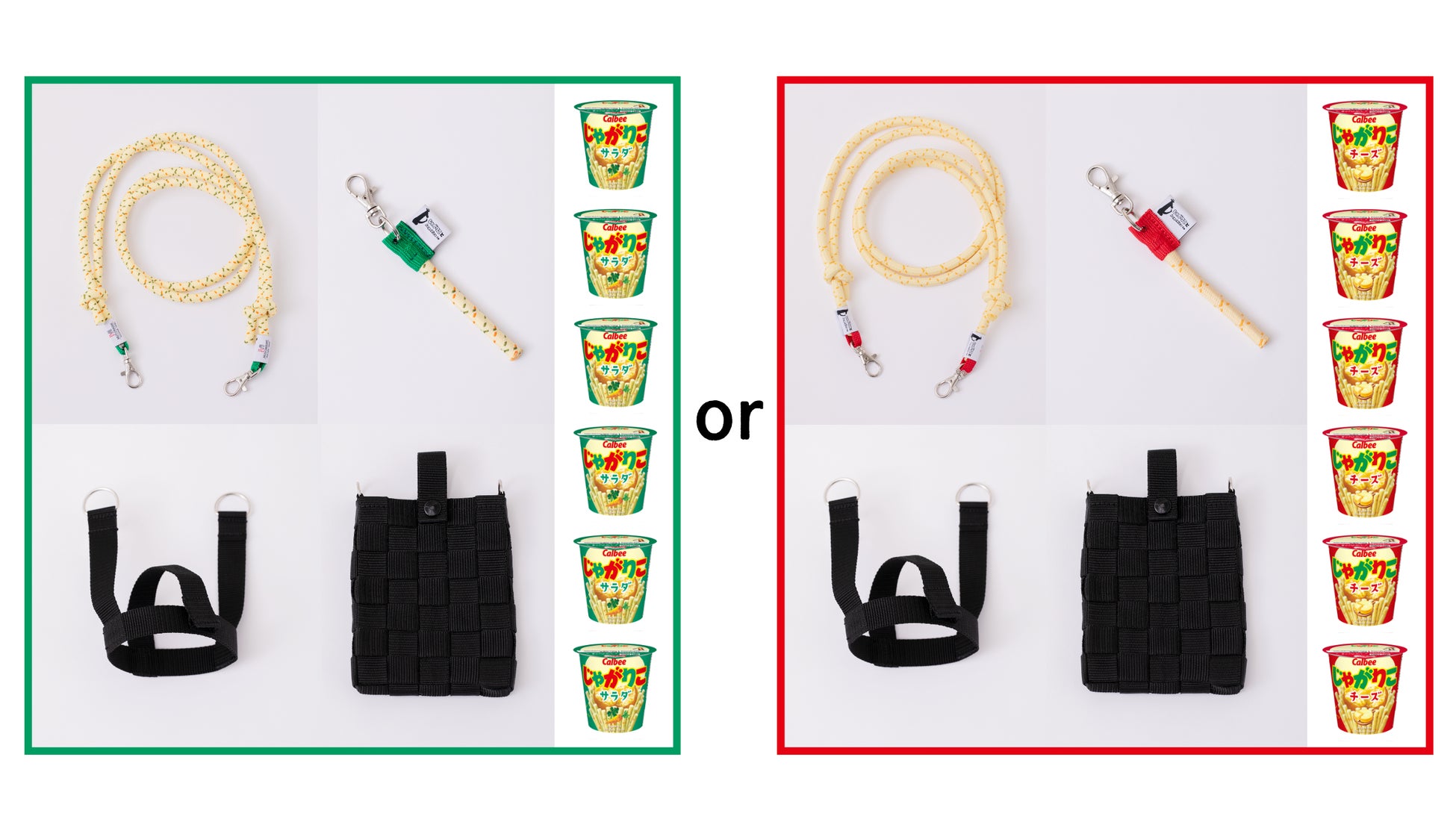1.サラダとチーズの2色展開!いつでもどこでも肩から「じゃがりこ」をぶらさげよう♪