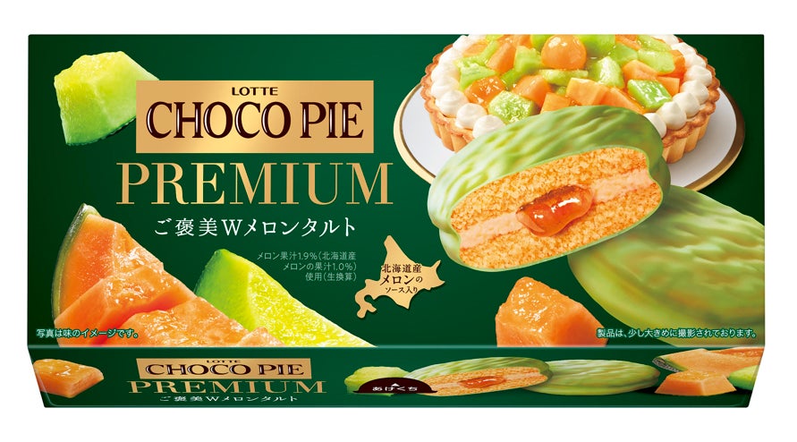 株式会社ロッテは、2種類の北海道産メロン(※)を使用した「チョコパイプレミアム<ご褒美Wメロンタルト>」を