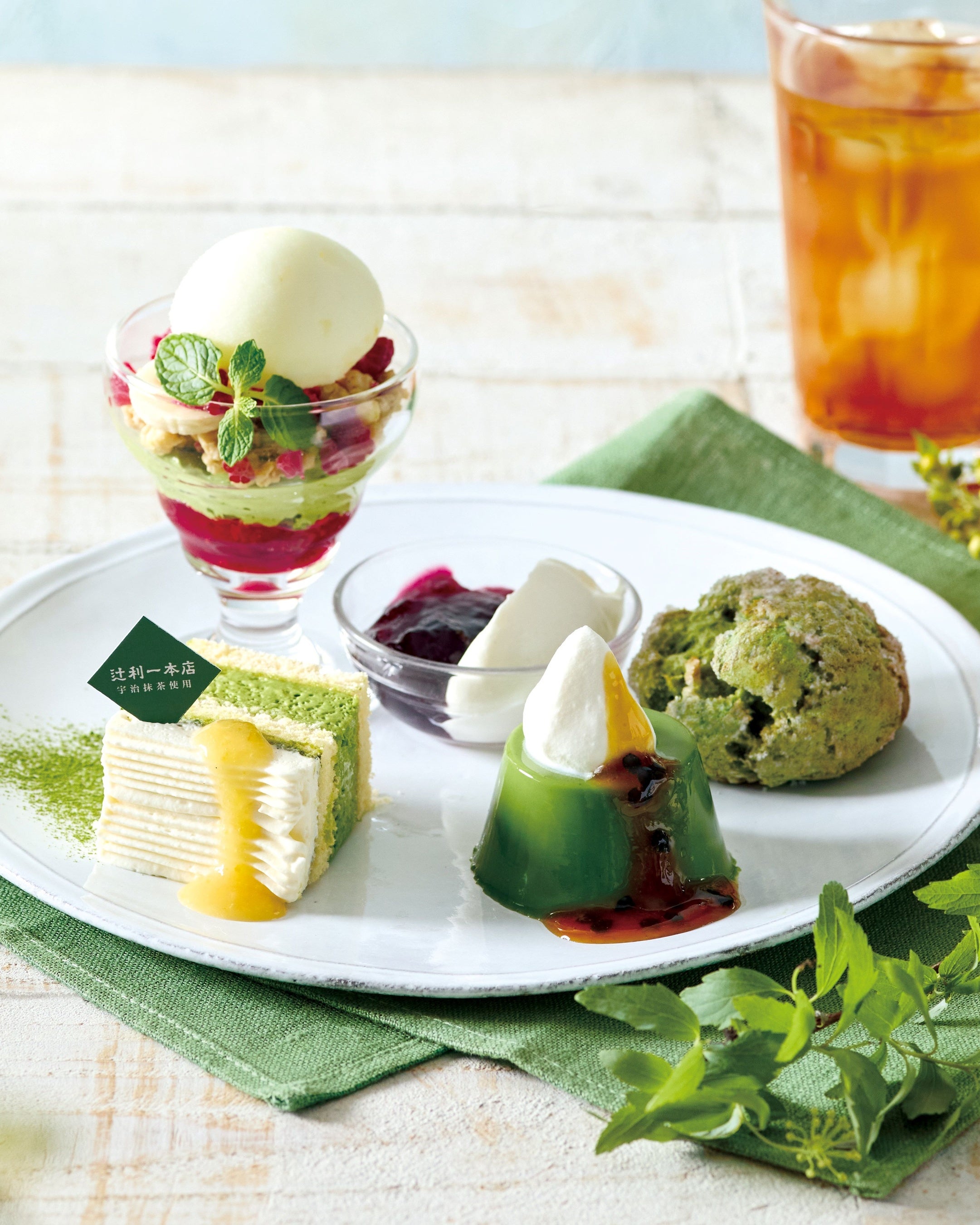 季節限定の宇治抹茶を楽しむスペシャルプレート。宇治抹茶を使用したスイーツ3品に加え、お好きなスイーツ1品をお選びいただけます。