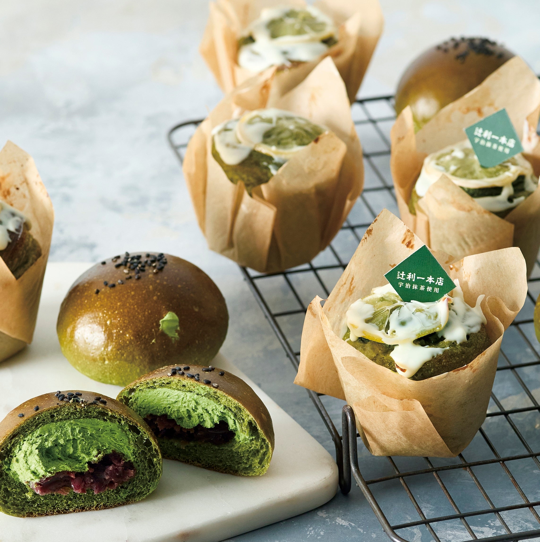 ベイカリー併設の16店舗限定で、宇治抹茶を使用した新作パン2種を発売