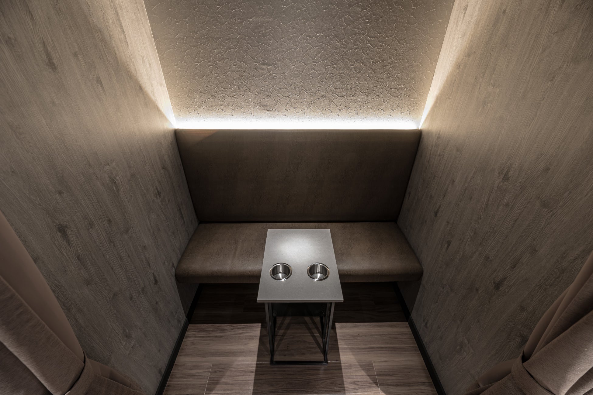 -室内のライトはご利用する女性のお客様がより綺麗に見えるよう、気にせず安心してご利用いただけるよう座席後方LEDライトによりほんのり明るく安心感あるお部屋の明るさに、スポットライトで顔の影を落とさないようテーブルのみに設置。よりお顔がはっきりと、綺麗に美しく見え、居心地のいい空間となっております。